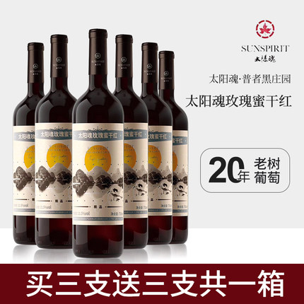 太阳魂珍藏级精酿玫瑰蜜赤霞珠干红葡萄酒红酒六支整箱装买一送一