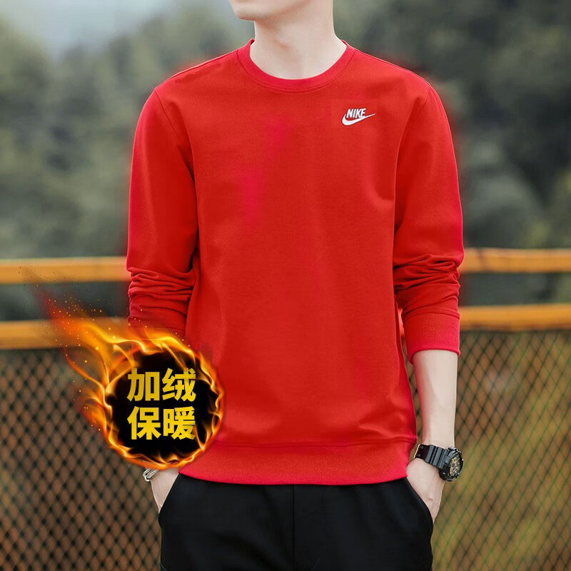 Nike耐克正品新年款红色卫衣男装长袖套头衫长裤子运动套装两件套