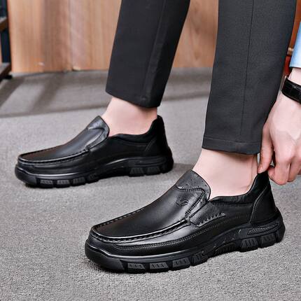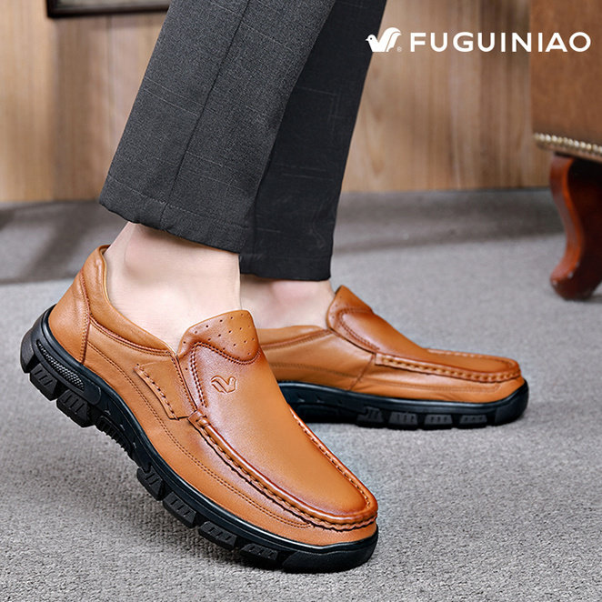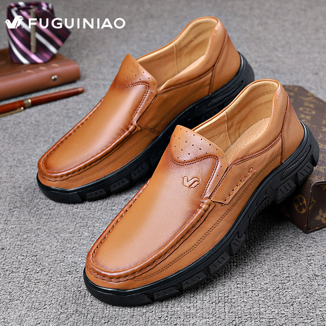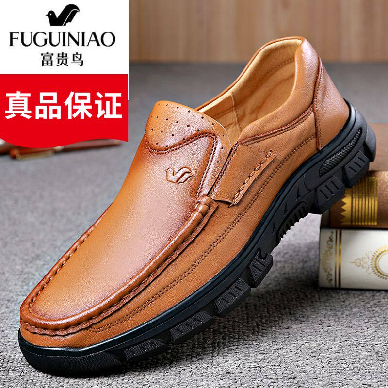 富贵鸟男鞋高档厚底牛皮鞋宽松爸爸鞋真皮软底防滑皮鞋男休闲百搭