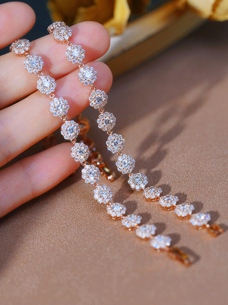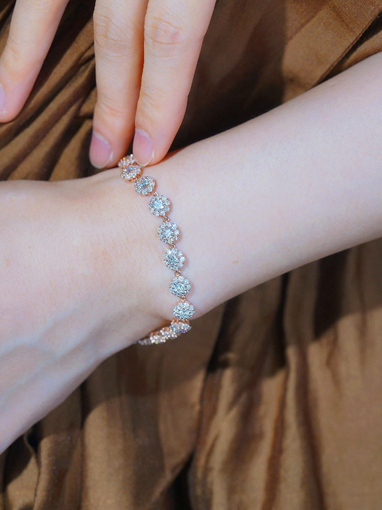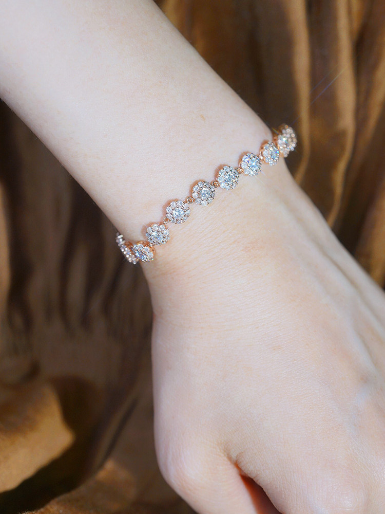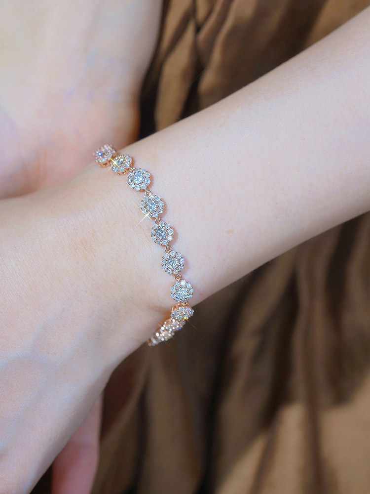 18K玫瑰金九围一满圈钻石手链手镯女 白金太阳花满钻钻石手链手饰