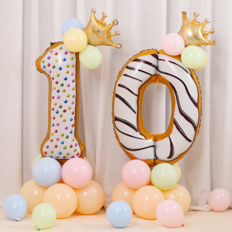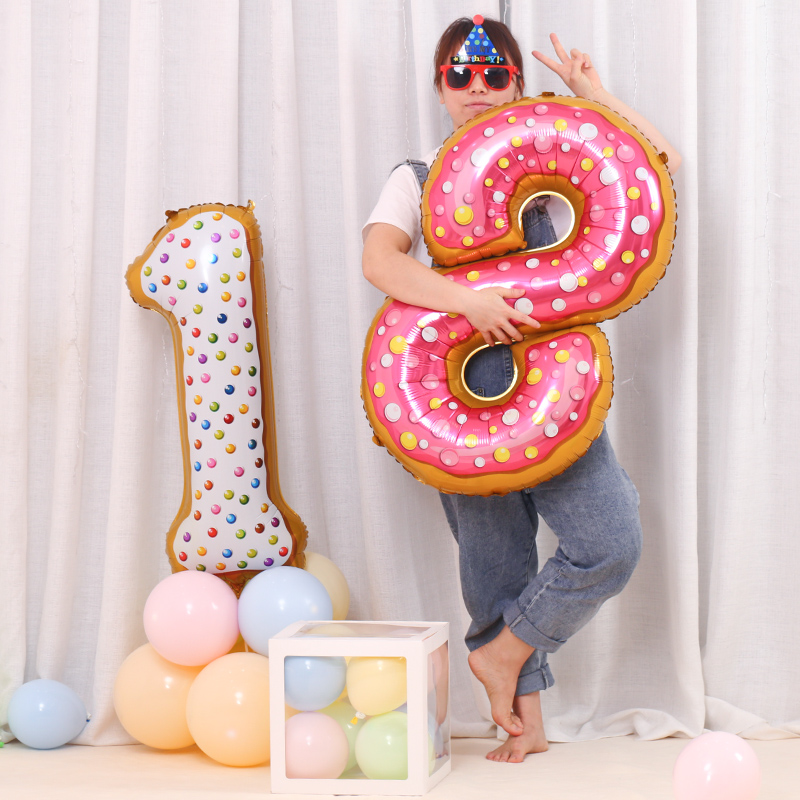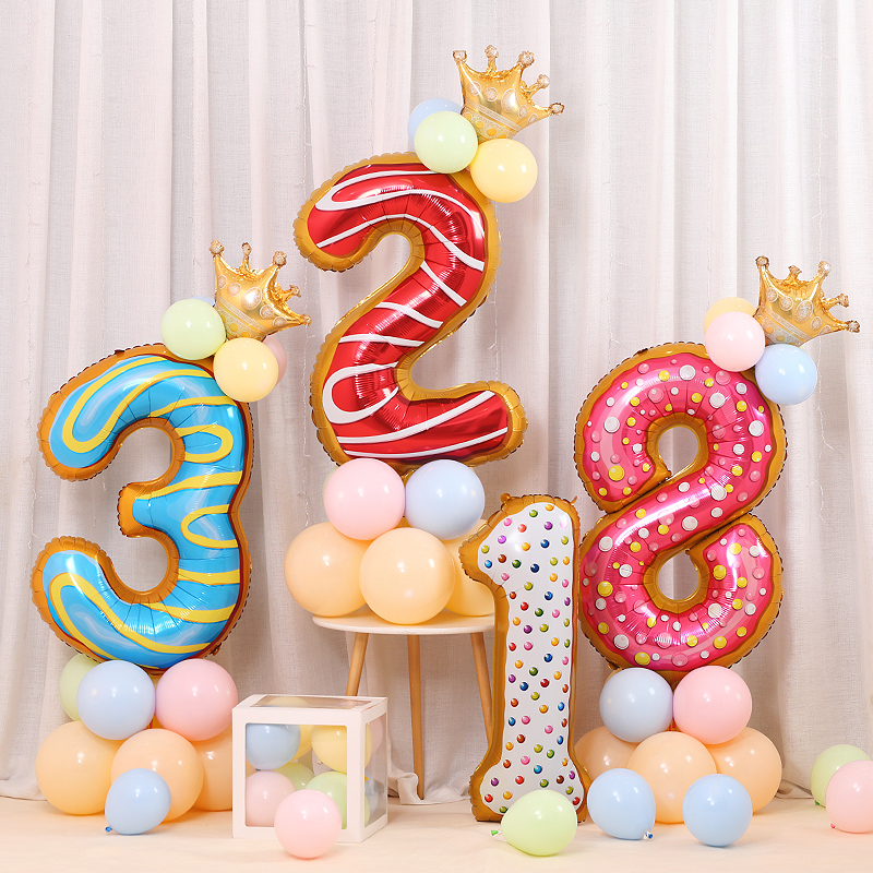 甜甜圈立柱路引宝宝生日周岁装饰场景派对布置大号糖果数字气球