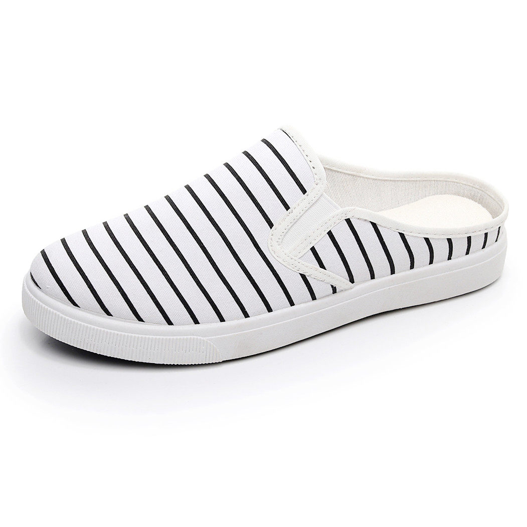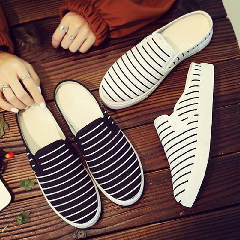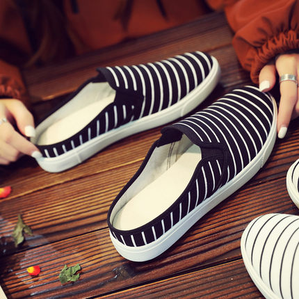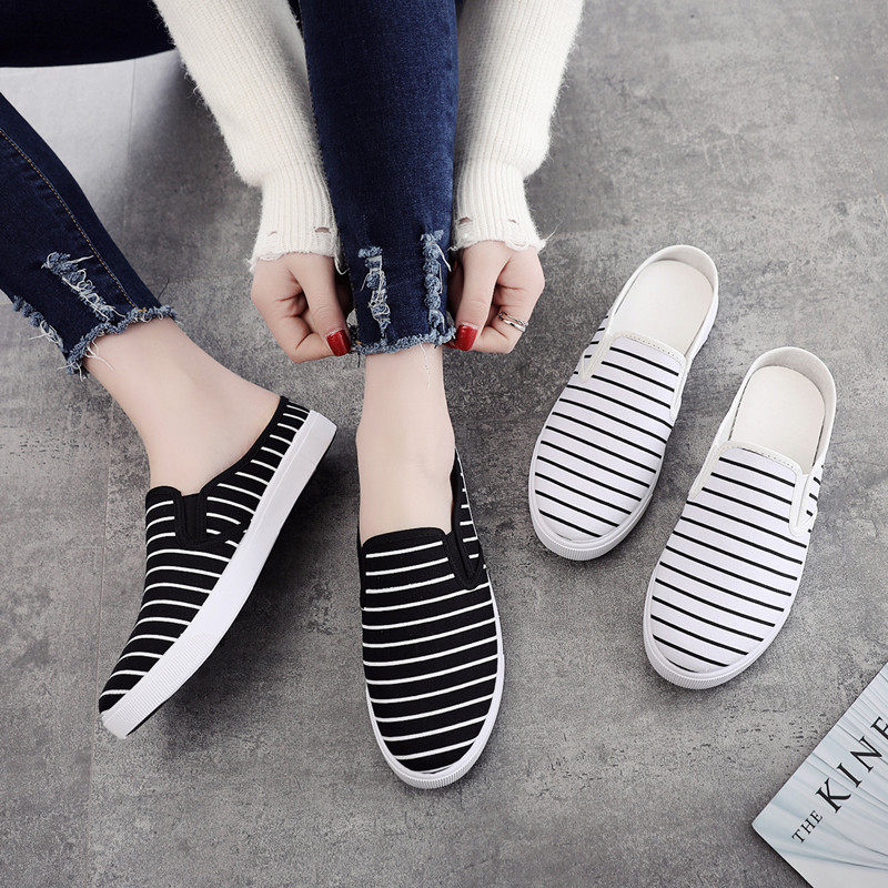 夏季帆布半托小白鞋女透气懒人无后跟凉拖鞋学生孕妇老北京布鞋女