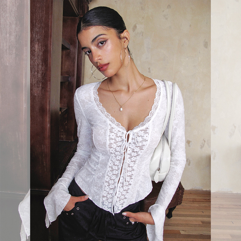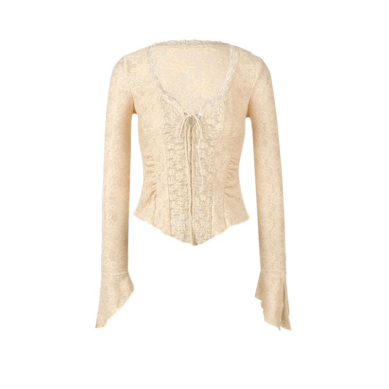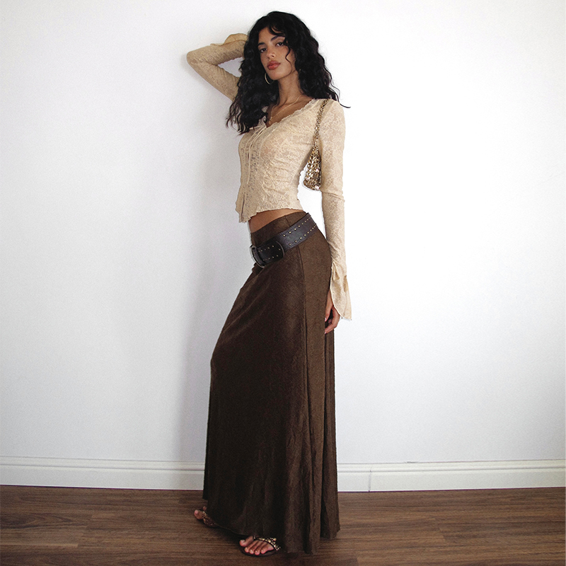 ITSNIKAR法式复古肌理感蕾丝长袖针织套装早秋包臀长裙上衣两件套