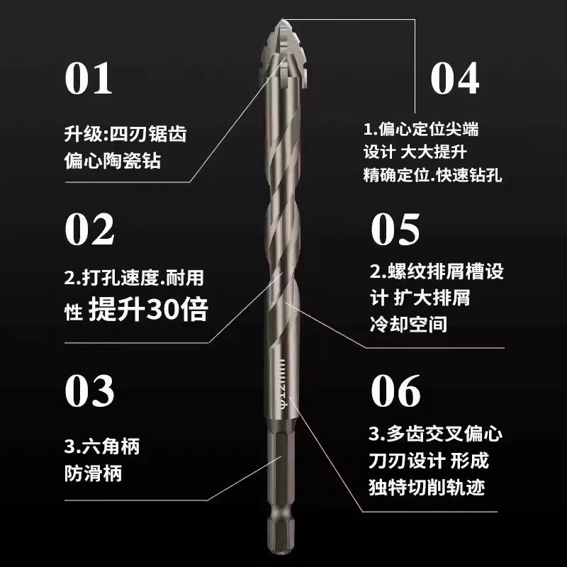 特快四刃锯齿偏心钻头瓷砖打孔混凝土超硬专用电钻高硬度干打霸王