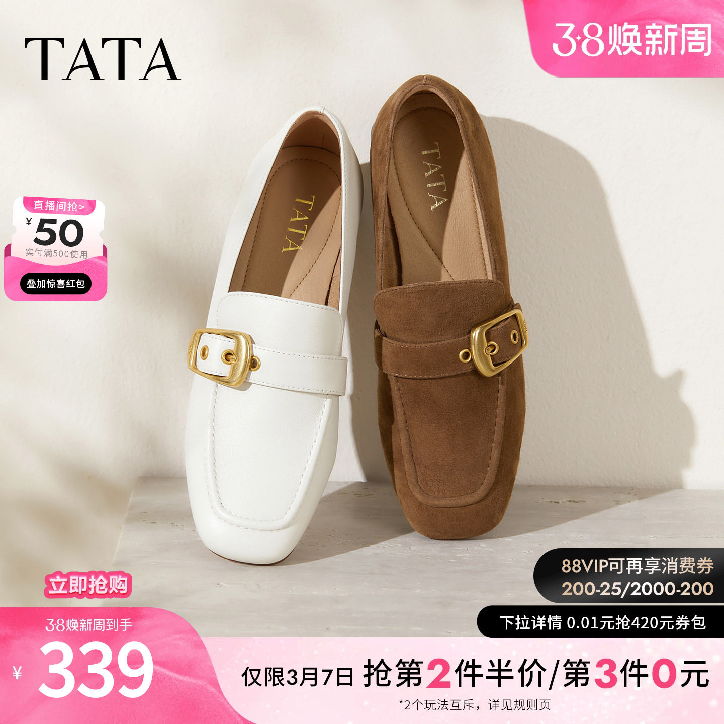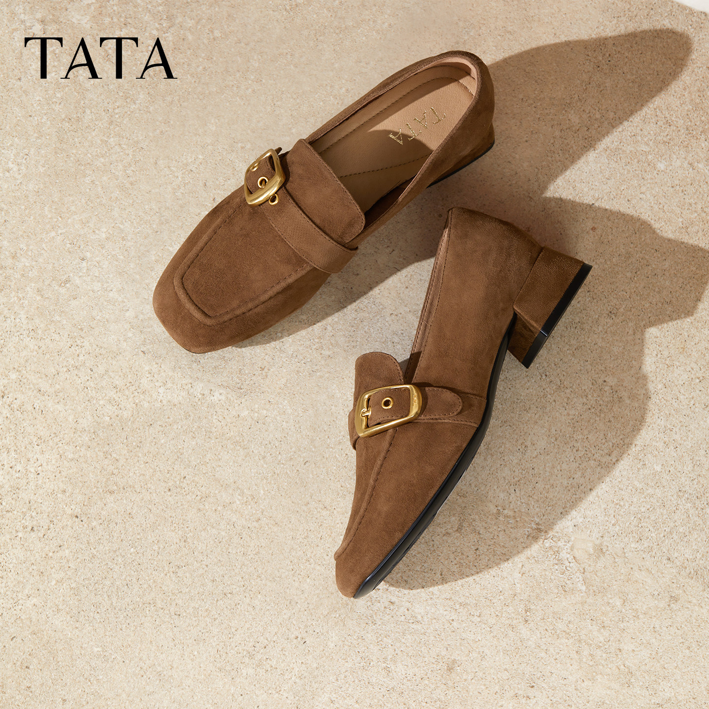 TATA他她女鞋商场同款时尚休闲鞋女粗跟乐福鞋新款鞋子7IDB4CA5