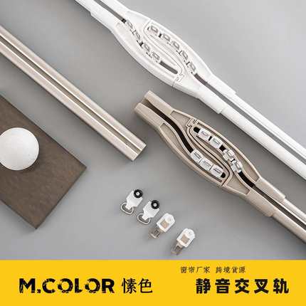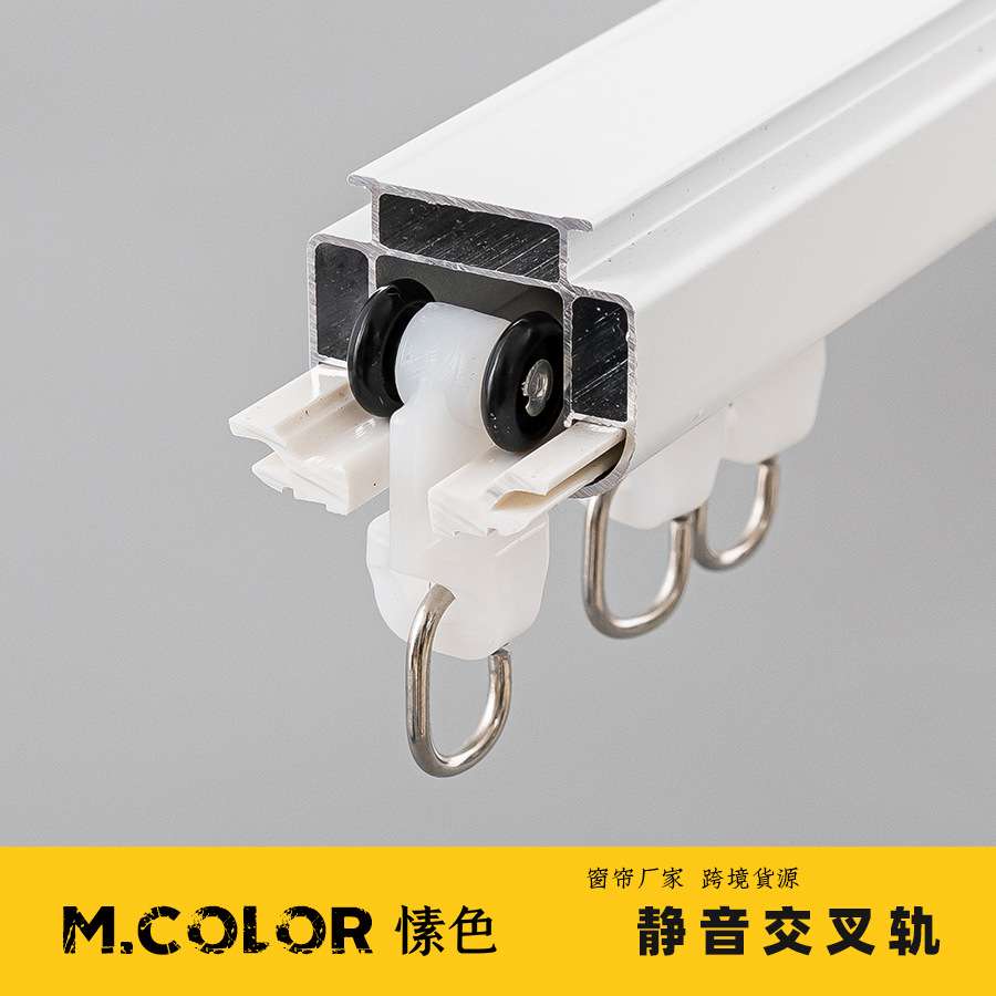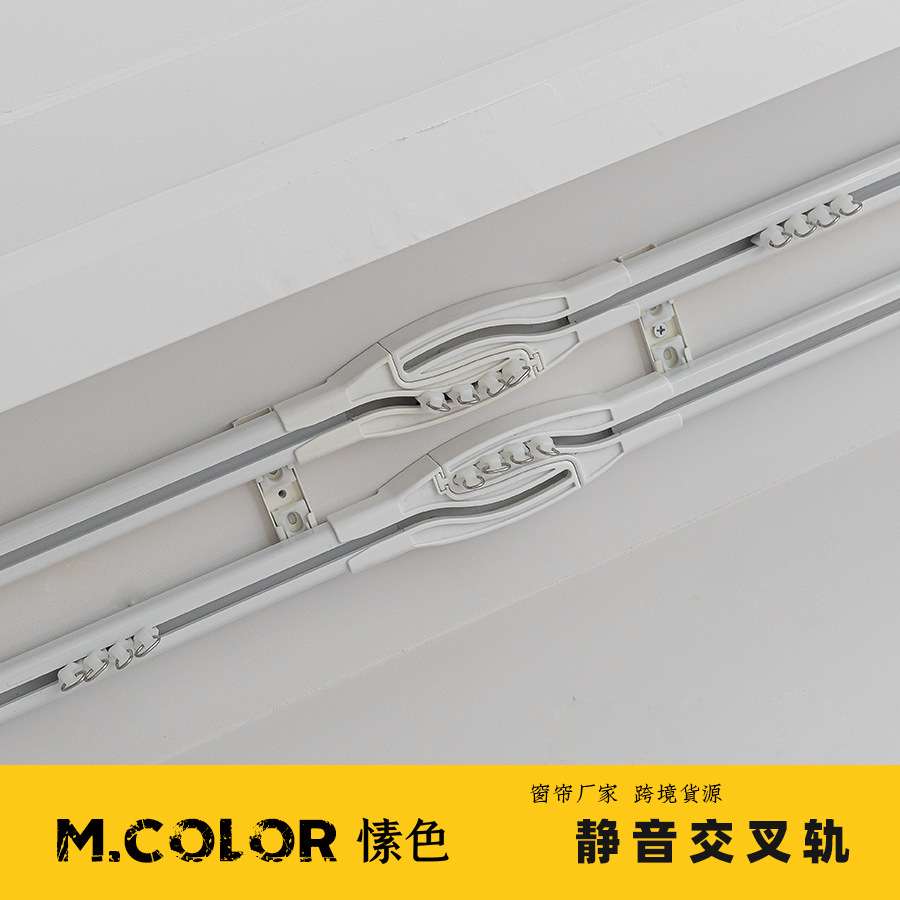 【防漏光静音交叉轨道】窗帘轨道铝合金静音直轨滑轨双轨顶装侧装