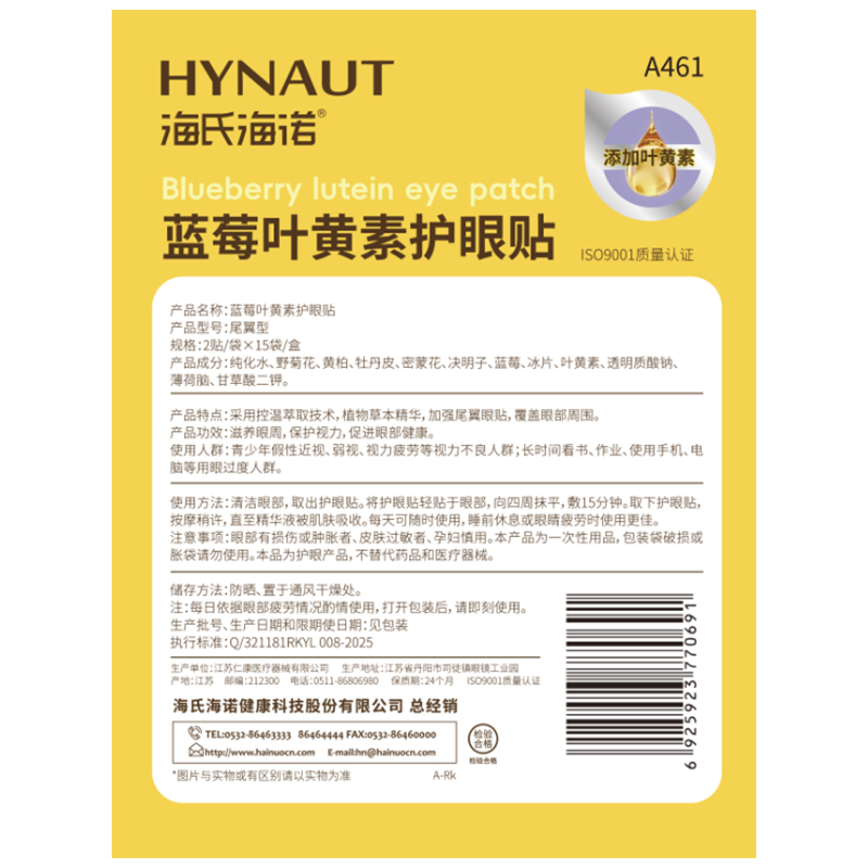海氏海诺蓝莓叶黄素护眼贴舒缓不适眼干眼涩呵护双眼官方正品