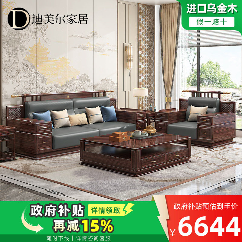 政府补贴乌金木实木官帽真皮沙发组合新中式别墅客厅家用高端家具