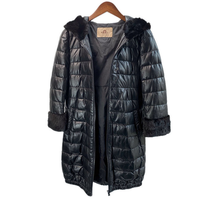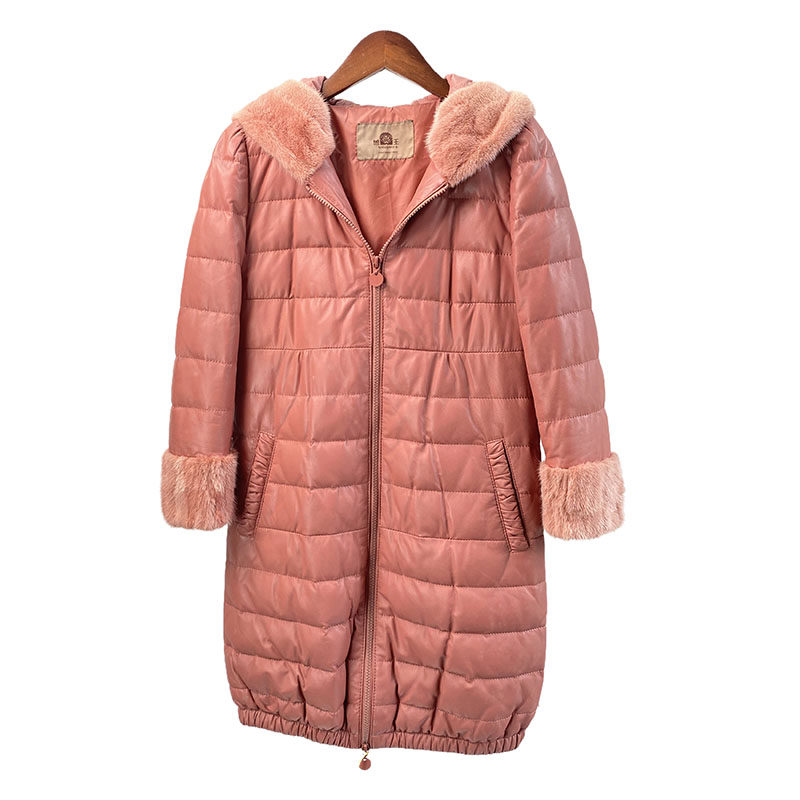 冬海宁中长款连帽皮皮衣羽绒服