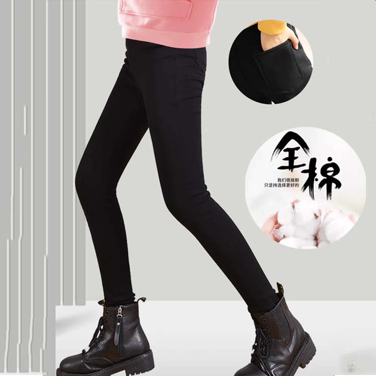 女童裤子秋冬加绒加厚修身小脚裤2025新款纯棉中大童弹力铅笔裤潮