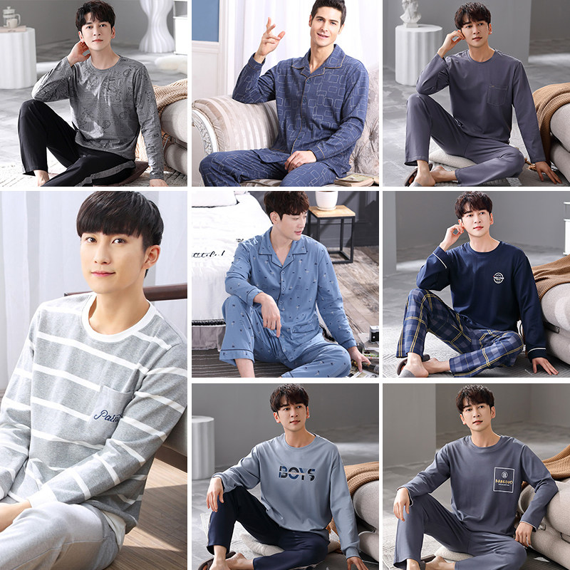 清仓特价睡衣男士春秋款纯棉长袖