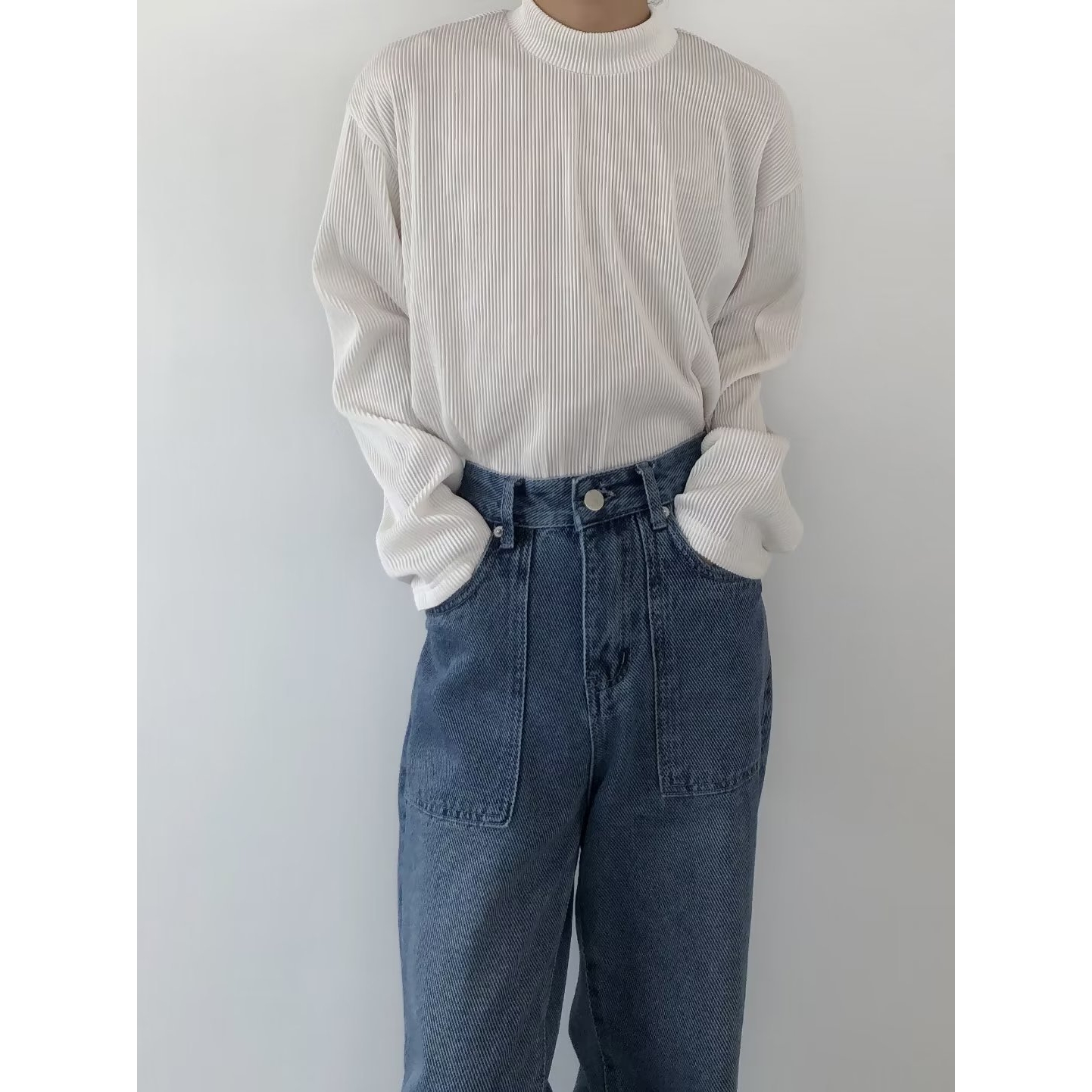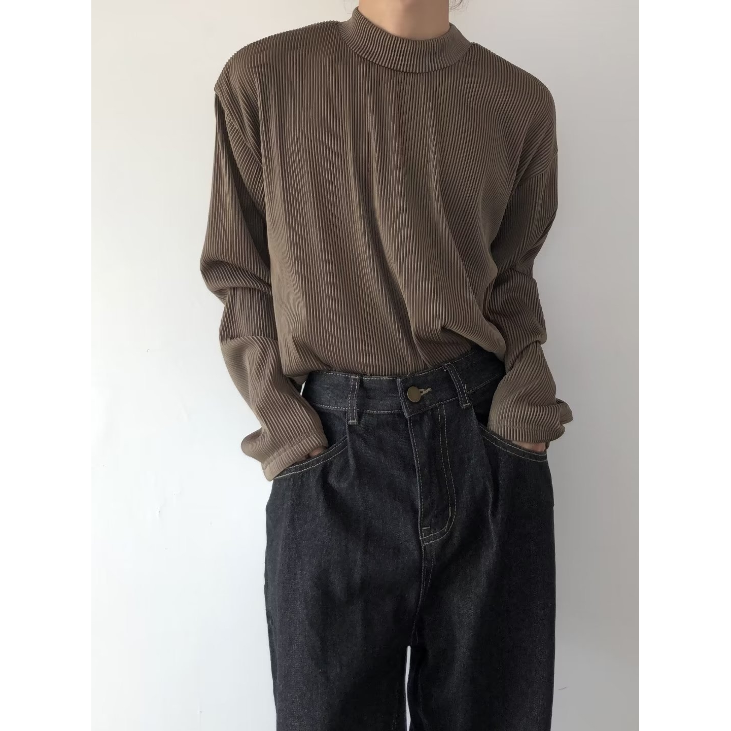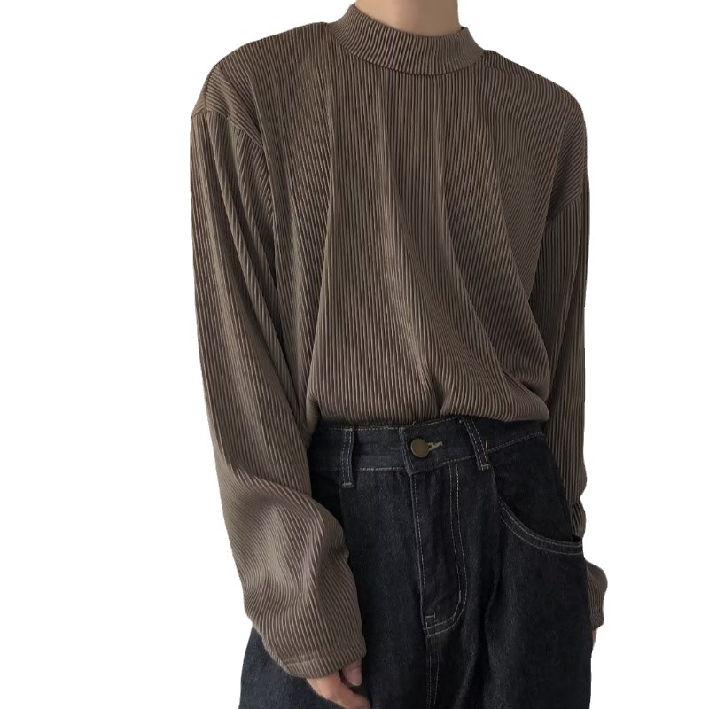 轻熟风上衣韩版宽松半高领打底衫长袖T恤男潮流秋季垂感体恤衫