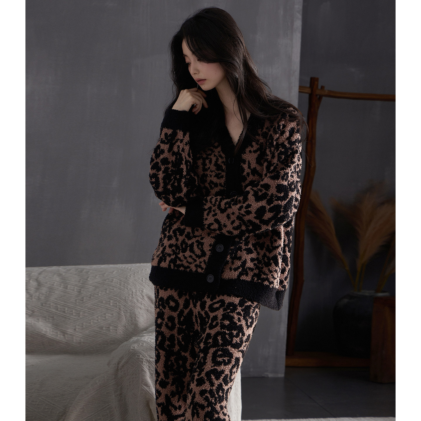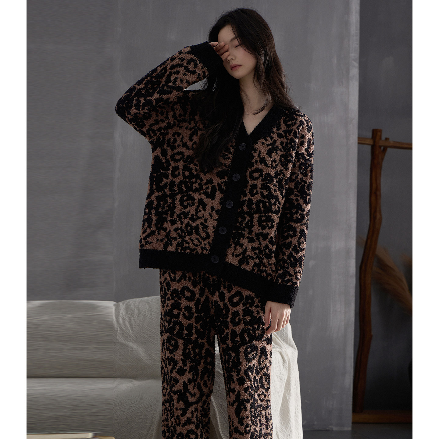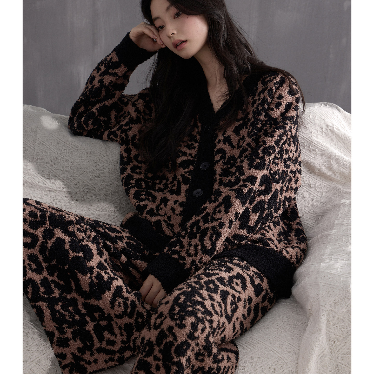 猫人豹纹珊瑚绒加厚睡衣女秋冬