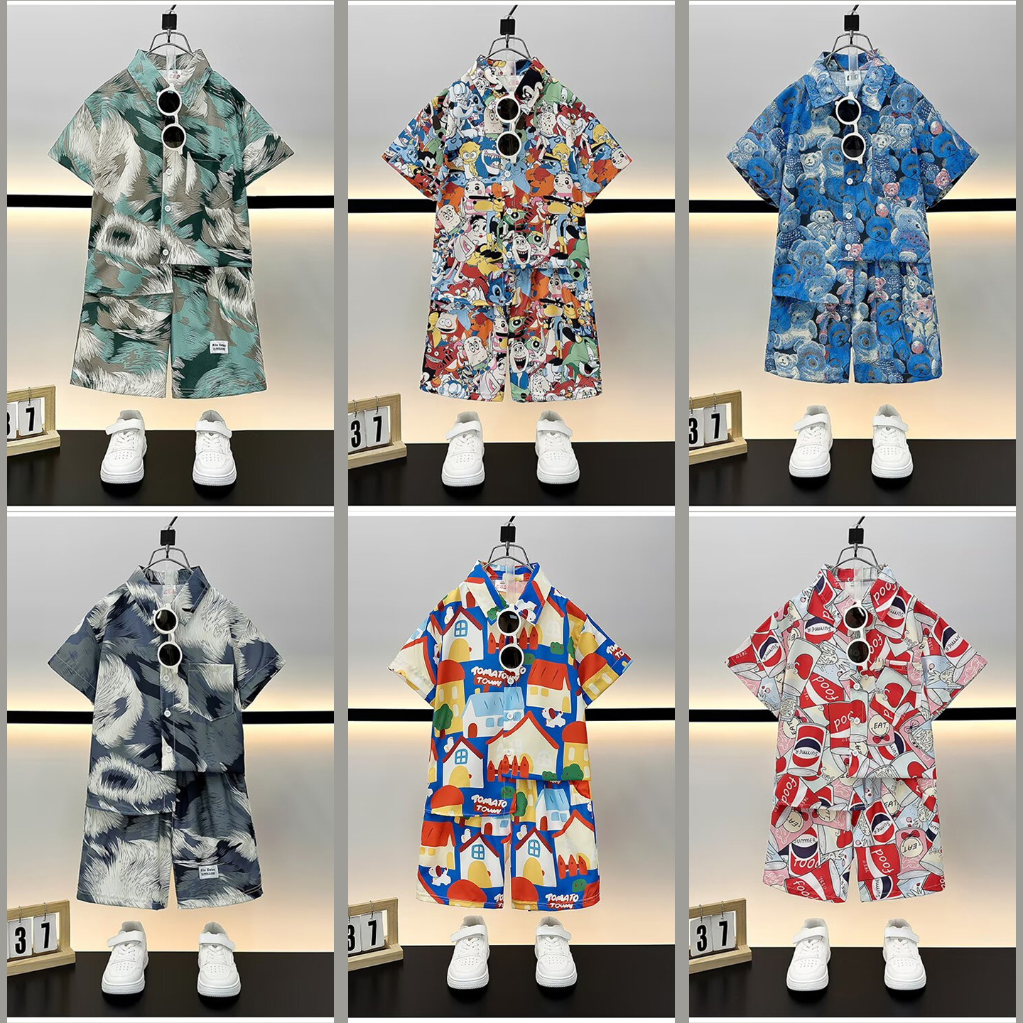 男童花衬衫沙滩酷痞帅套装夏威夷风短袖儿童夏装男孩三亚海边穿搭