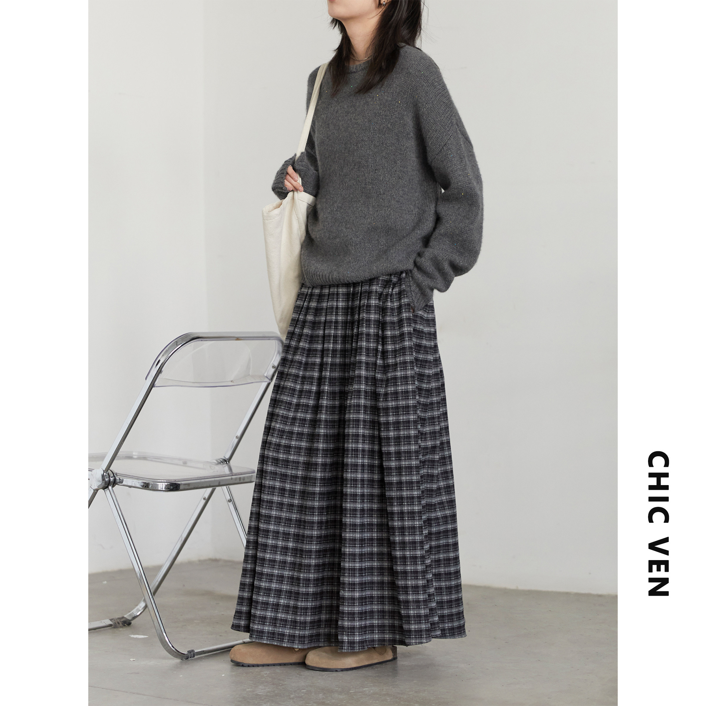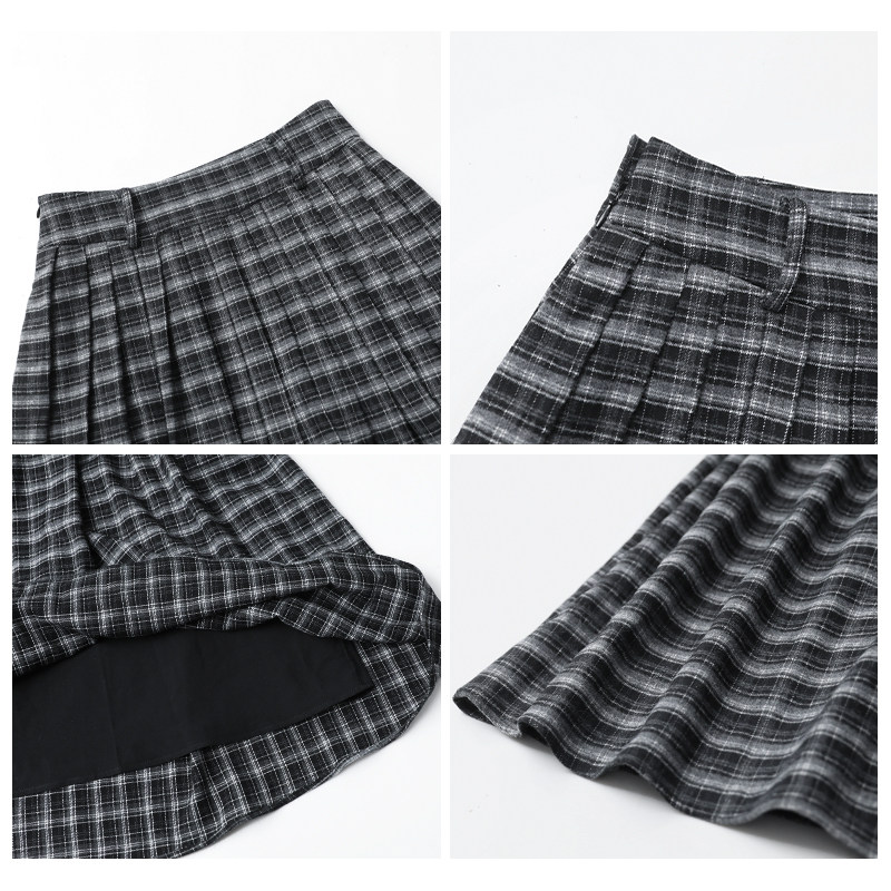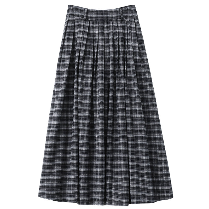 CV大码女装 秋季新款复古格子半身裙宽松大摆A字百褶长裙胖MM穿搭