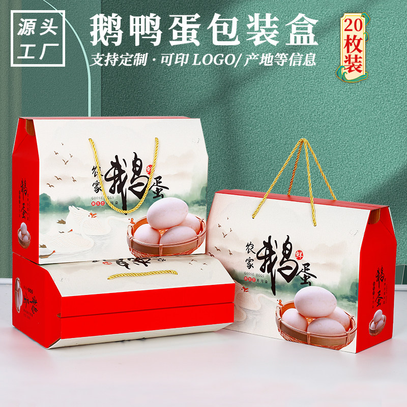 高档鹅蛋包装盒5-8斤装礼盒20枚鹅蛋盒子带鹅蛋托礼品盒批发加印