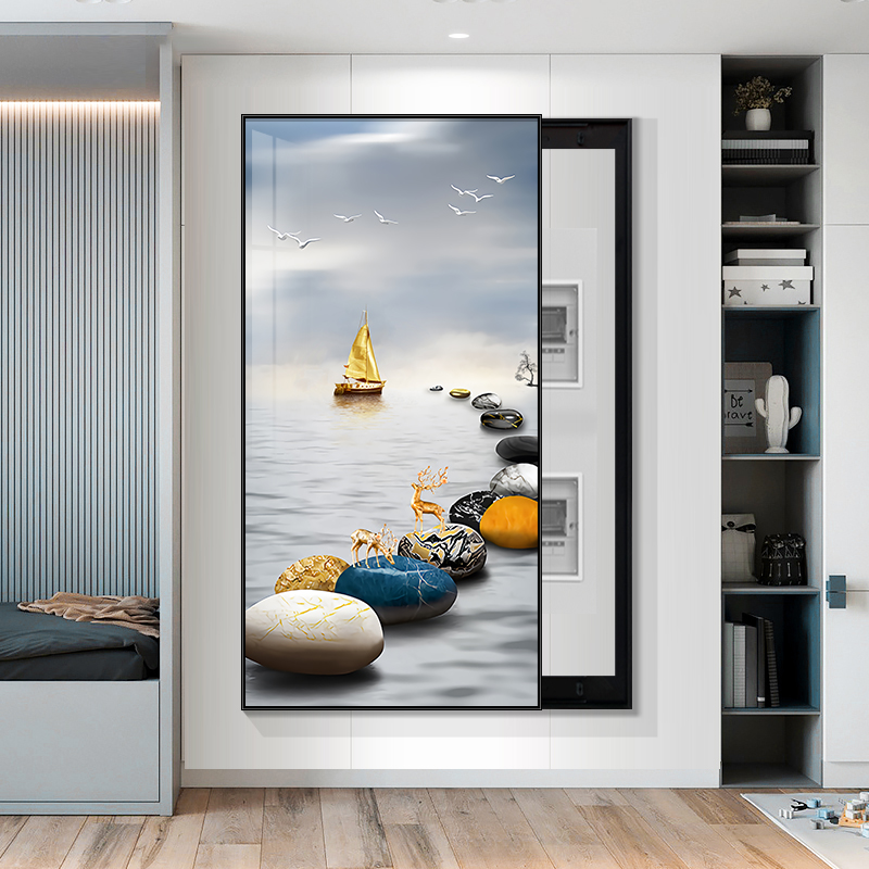 简约电表箱装饰画竖款弱电箱遮挡画现代轻奢配电箱电闸挂画可定制