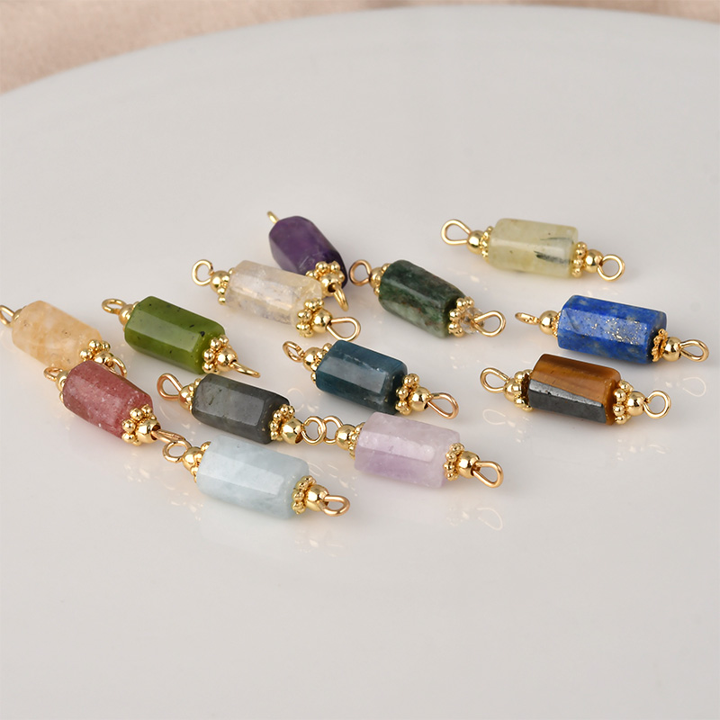 天然石草莓晶粉晶紫晶双吊圆柱吊坠diy手链项链耳饰配件材料
