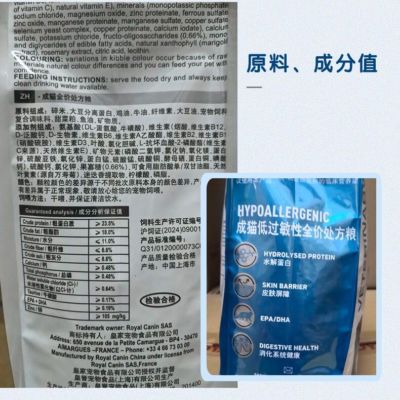 皇家DR25低过敏性处方粮皮肤脱敏胃肠敏感体质低敏成猫配方猫粮