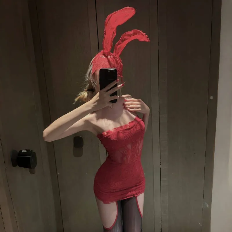 6148潮尚夜总会桑拿内衣红色性感睡裙蕾丝诱惑兔女郎网红包臀裙