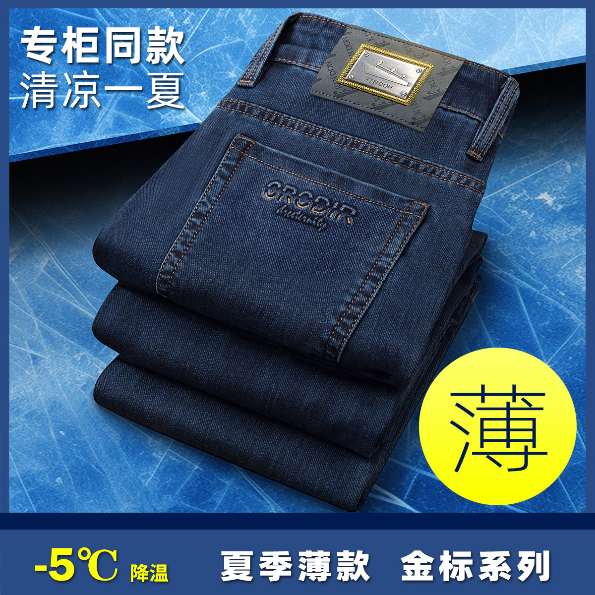 金盾2025夏季新款牛仔裤男薄款高腰宽松直筒商务休闲冰丝弹力长裤