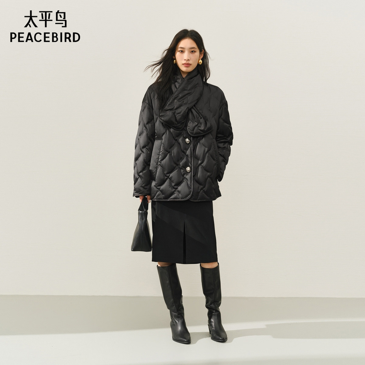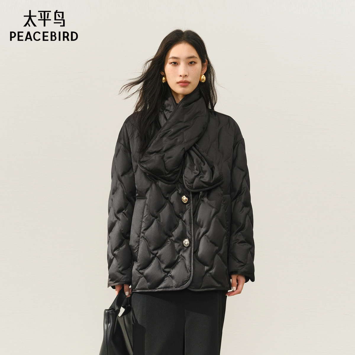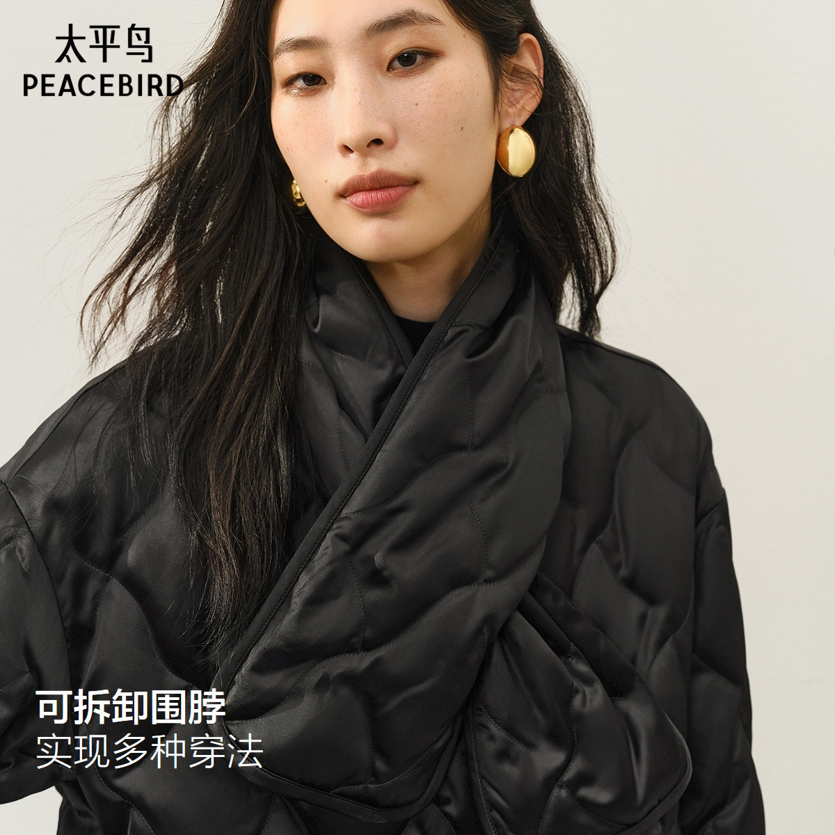 【商场同款】太平鸟轻薄围巾羽绒服女短款黑色高级外套A1ACF4121