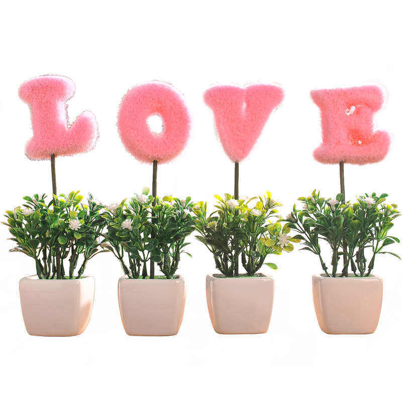 仿真植物LOVE小盆栽假花小树草球盆景家居客厅桌面摆设装饰品摆件