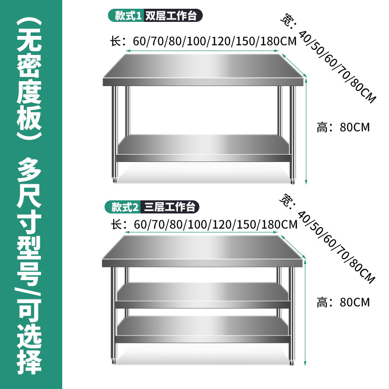 不锈钢工作台厨房操作台灶台架案板家用台面升级加厚全不锈钢桌子