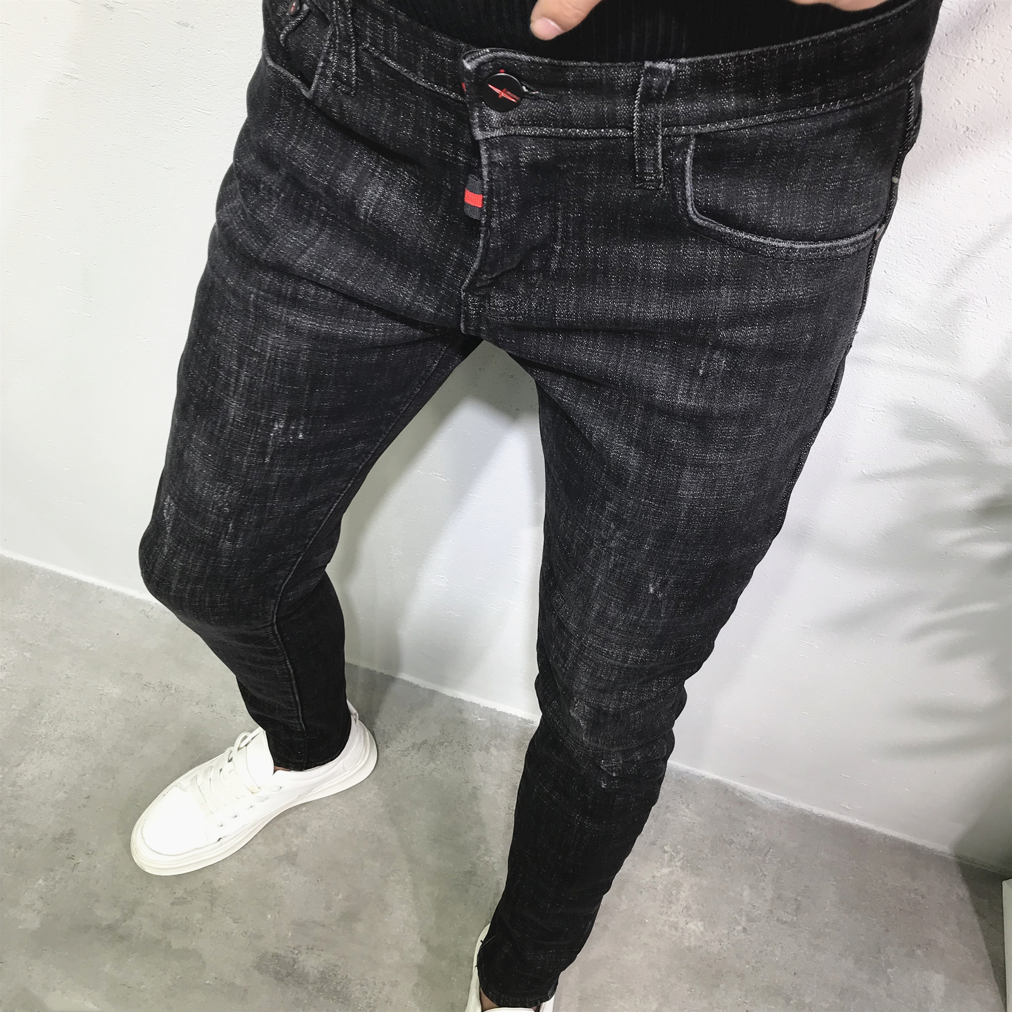 加绒加厚保暖黑色牛仔长裤男潮冬新韩版修身小脚猫须百搭社会青年