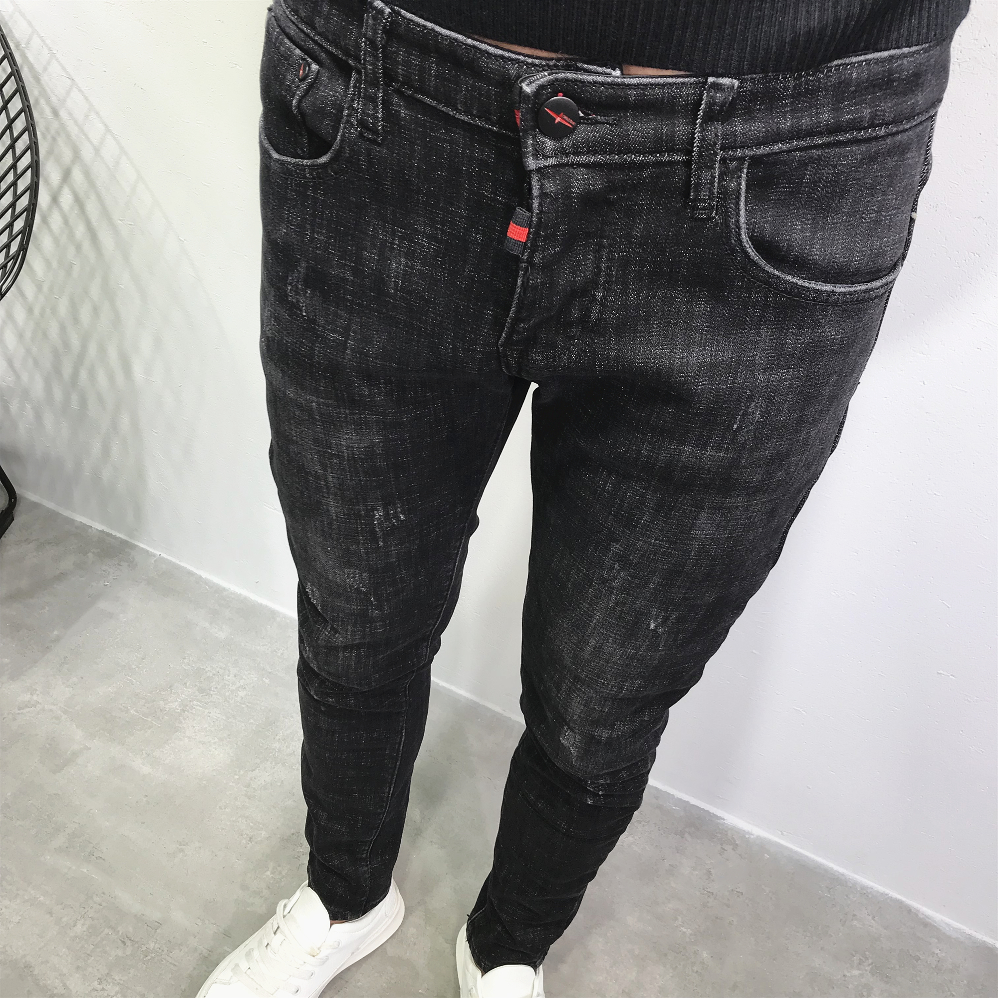 加绒加厚潮冬猫须社会牛仔长裤男