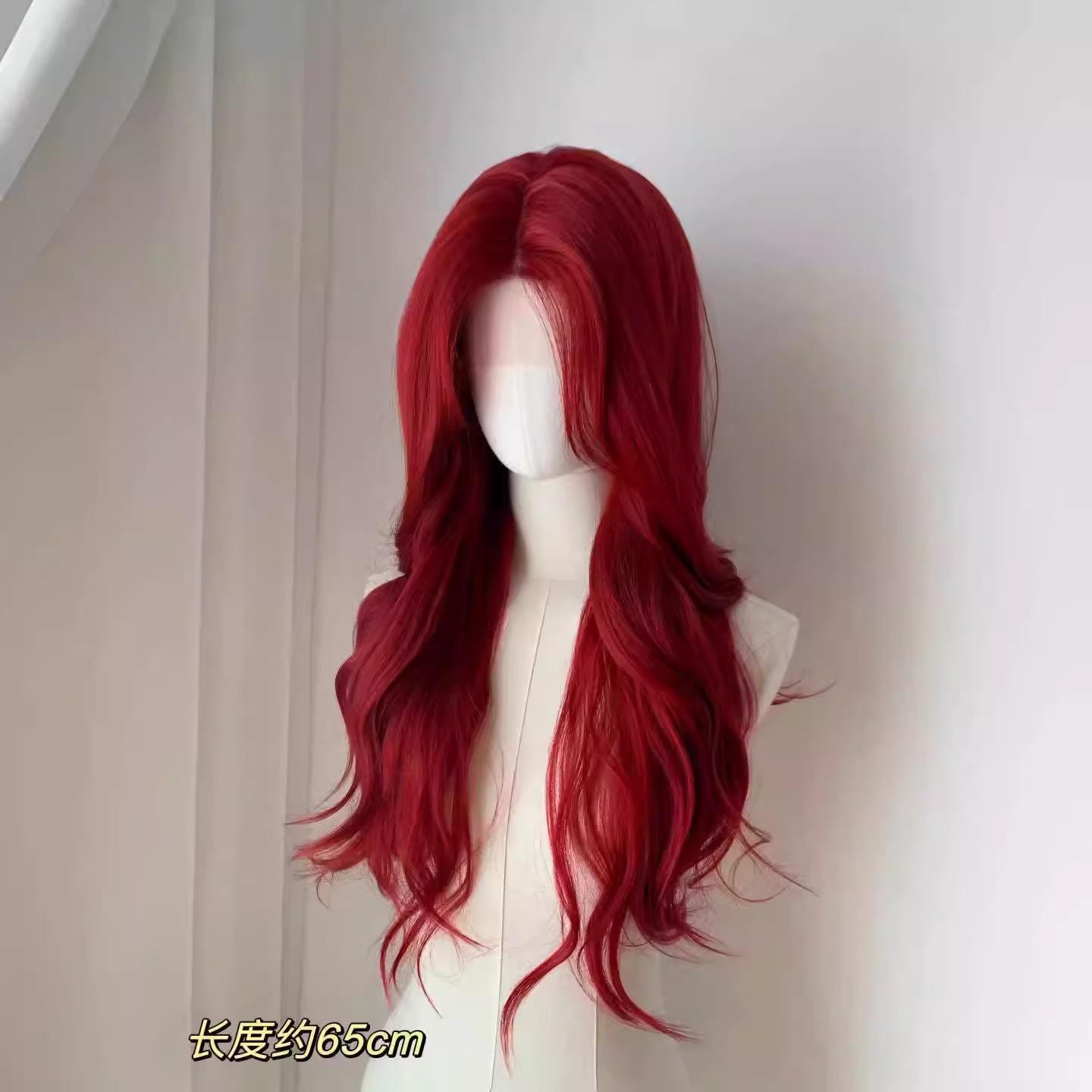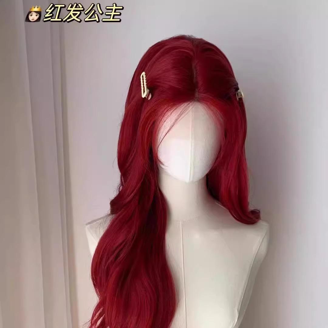 湄拉·红色假发女八字刘海长卷发海王红大波浪万用cos假发全头套