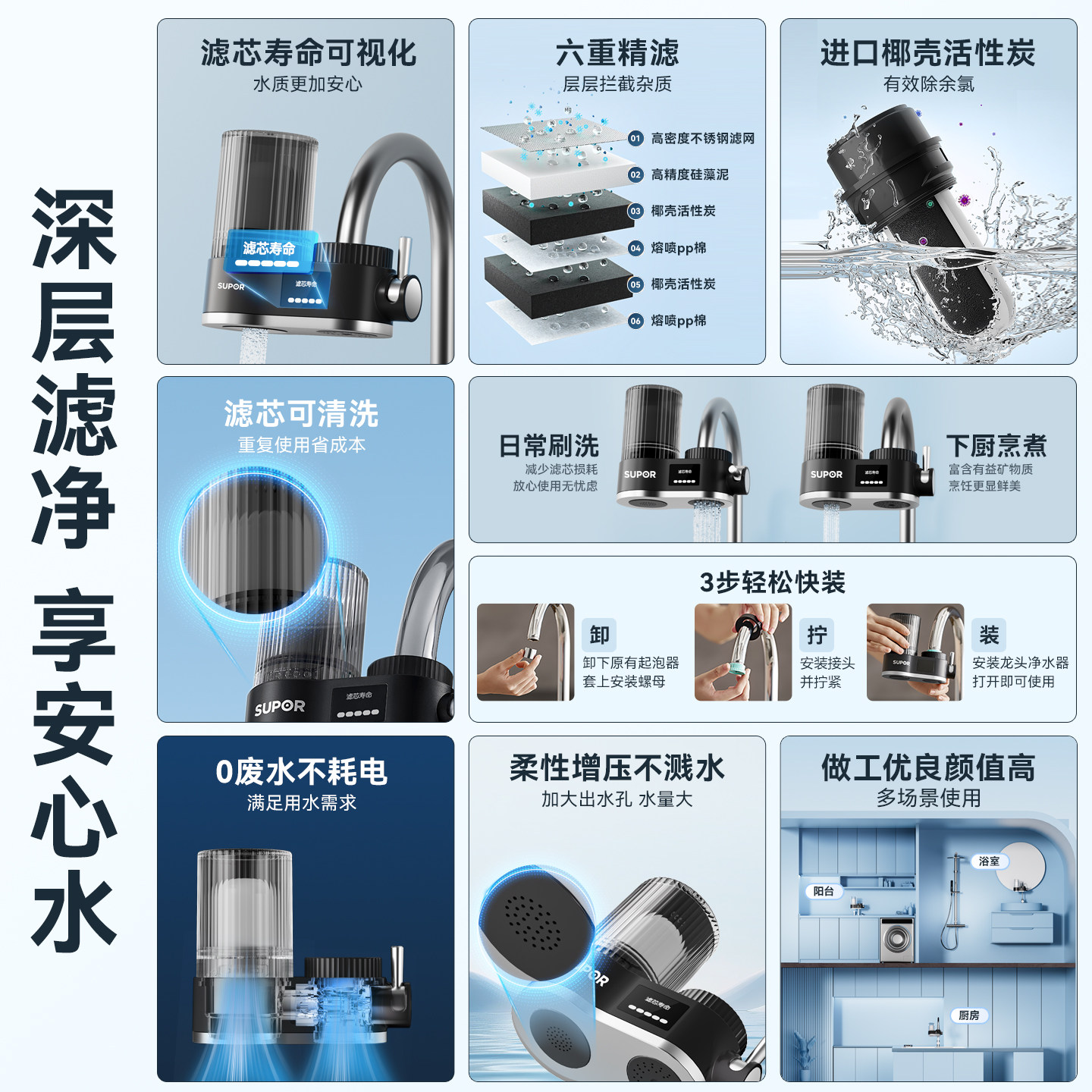 苏泊尔C25水龙头过滤器家用净水器厨房自来水前置超滤净水机C15