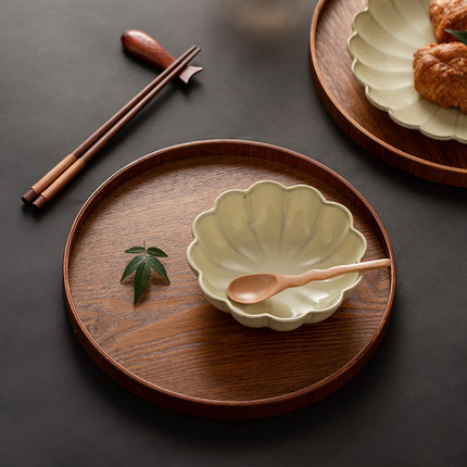 日式糕点盘 水曲柳木复古托盘茶盘餐盘咖啡店家用收纳盘圆形果盘