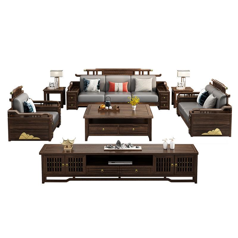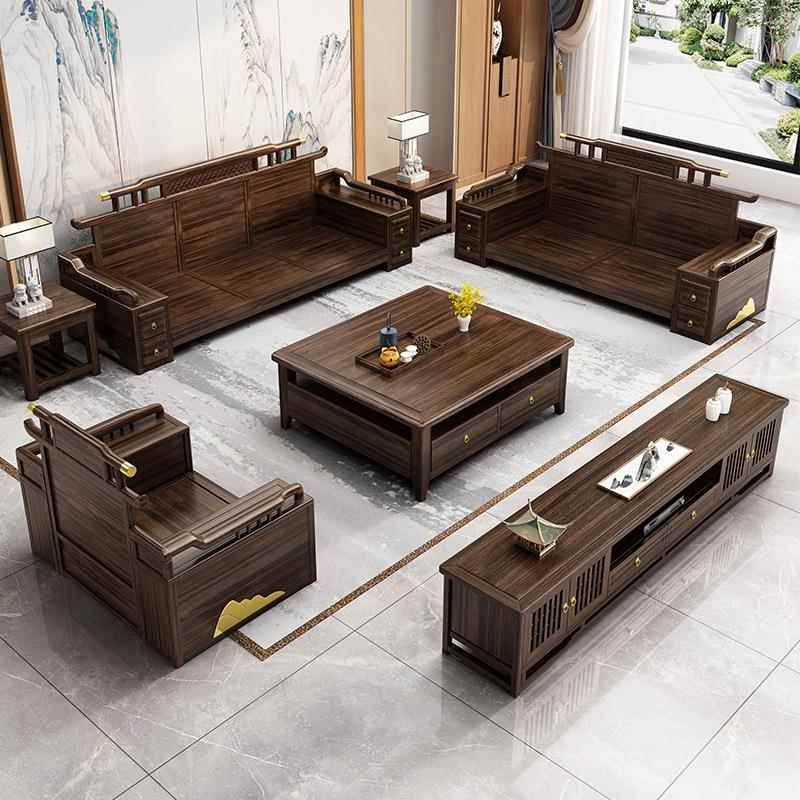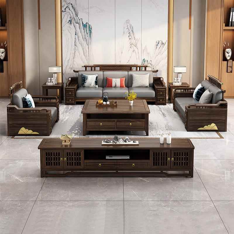 乌金木新中式实木沙发组合客厅轻奢现代简约家具别墅高端样板房