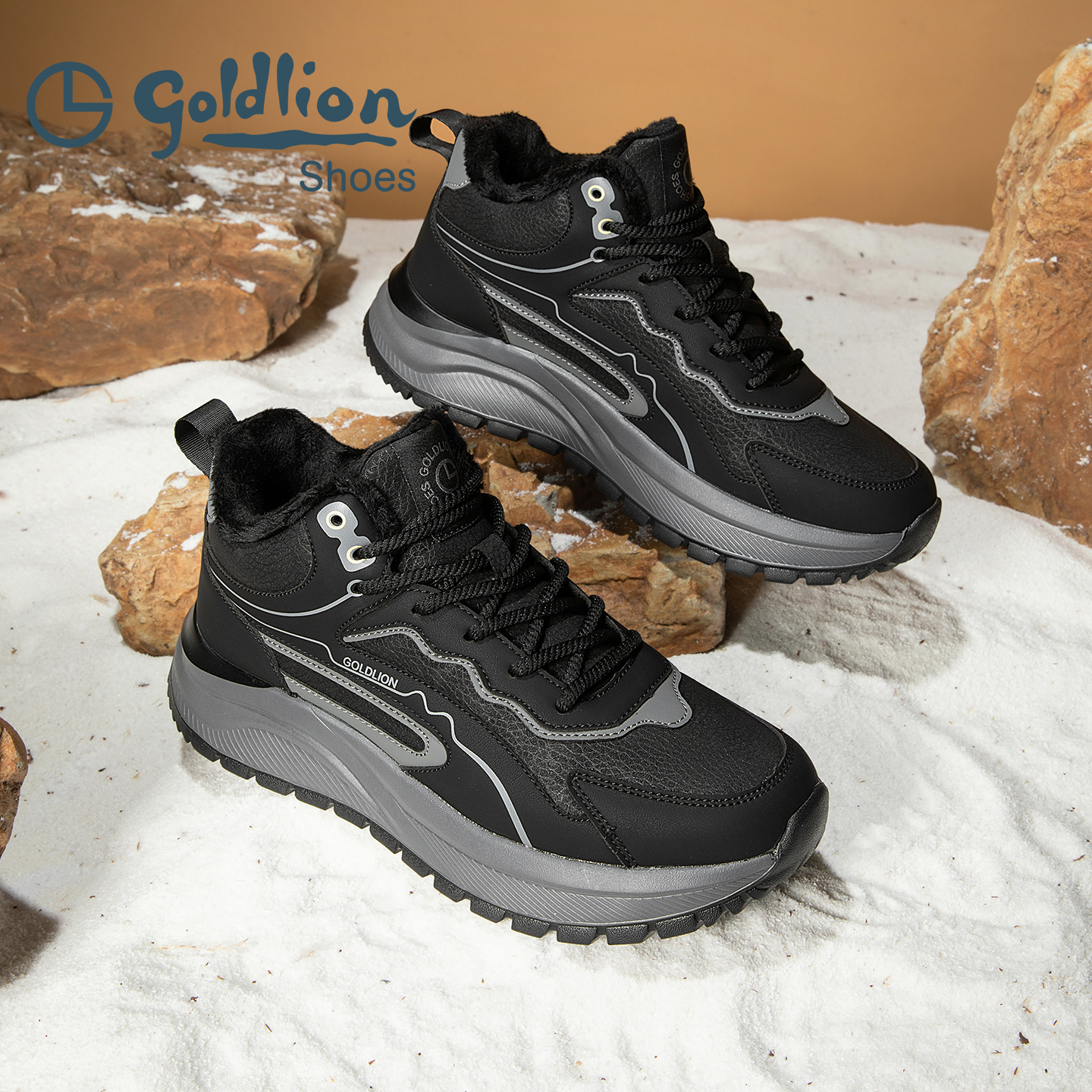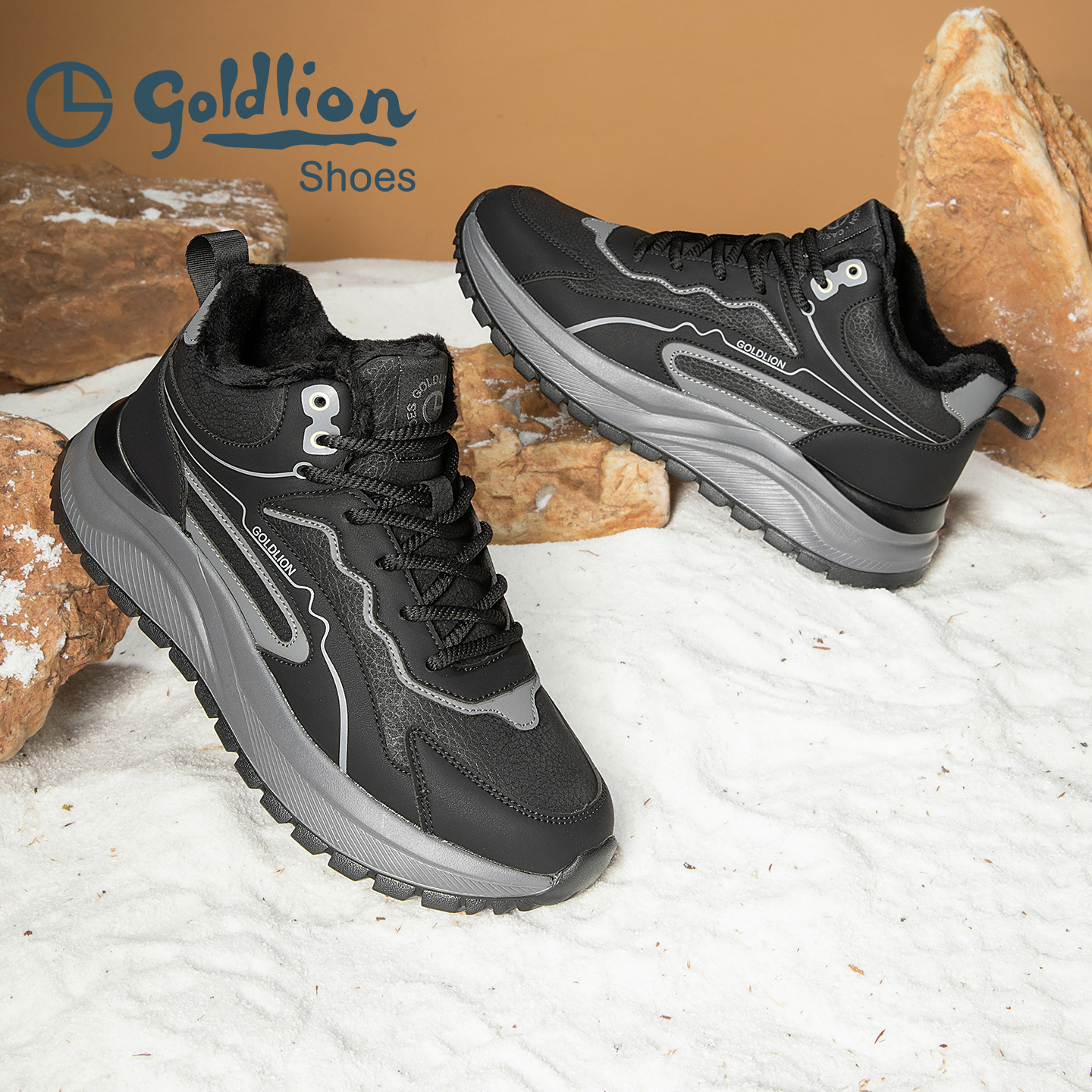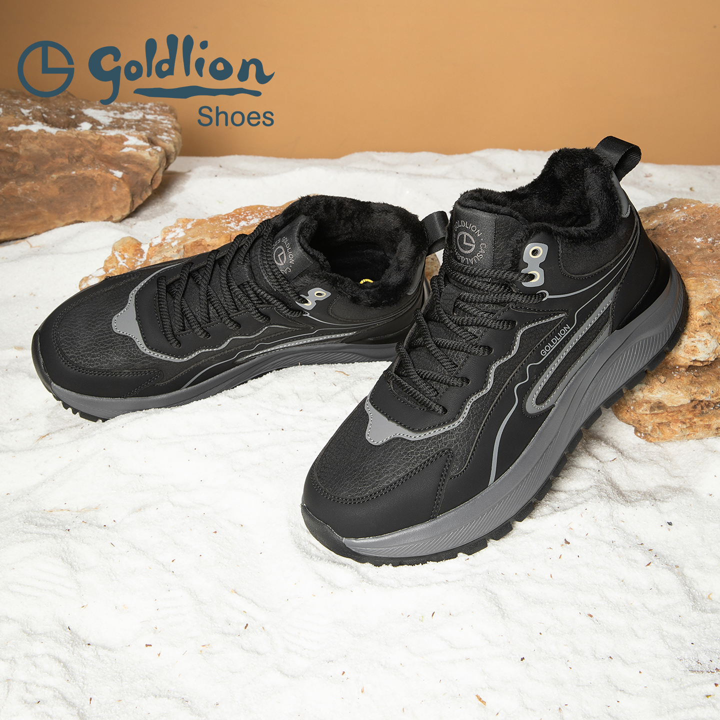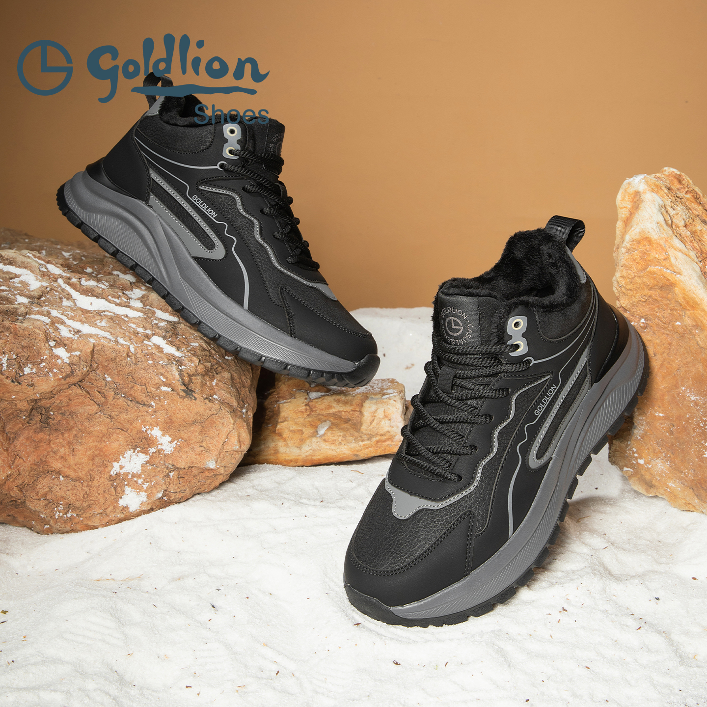 Goldlion/金利来男鞋新款加绒休闲鞋皮靴皮鞋棉鞋厚底防滑耐磨