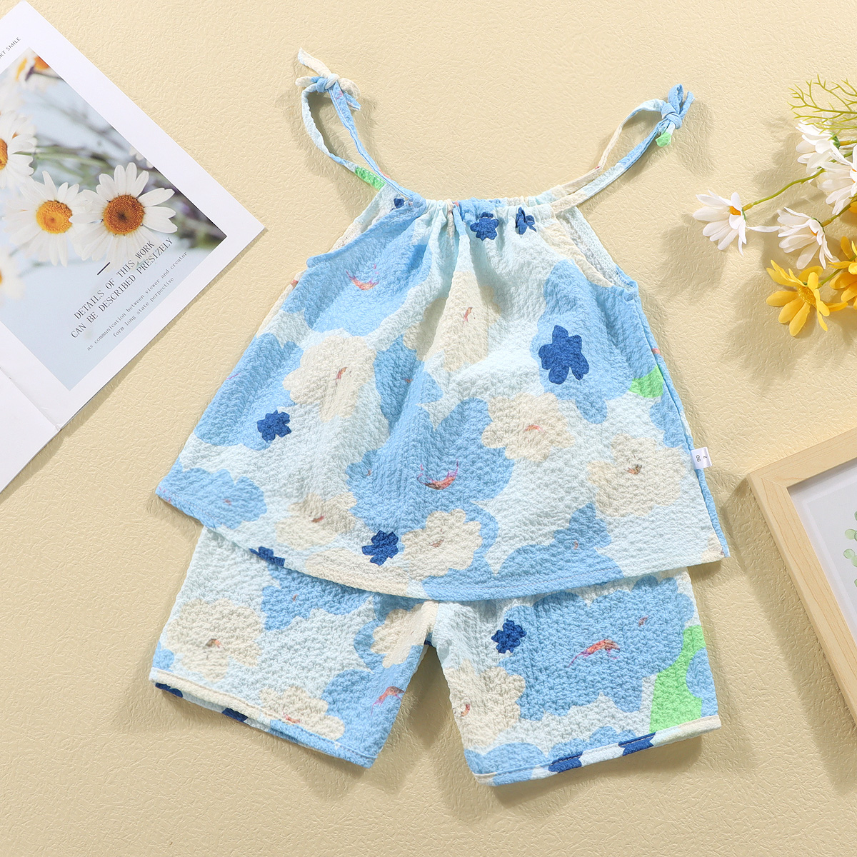 晕染油画风宝宝吊带裙套装夏季女童洋气碎花背心裙裤网红两件套薄