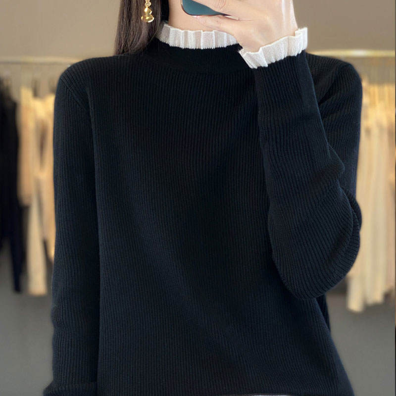 蕾丝打底衫女春秋季2025新款木耳边针织上衣漂亮小衫大码黑色毛衣