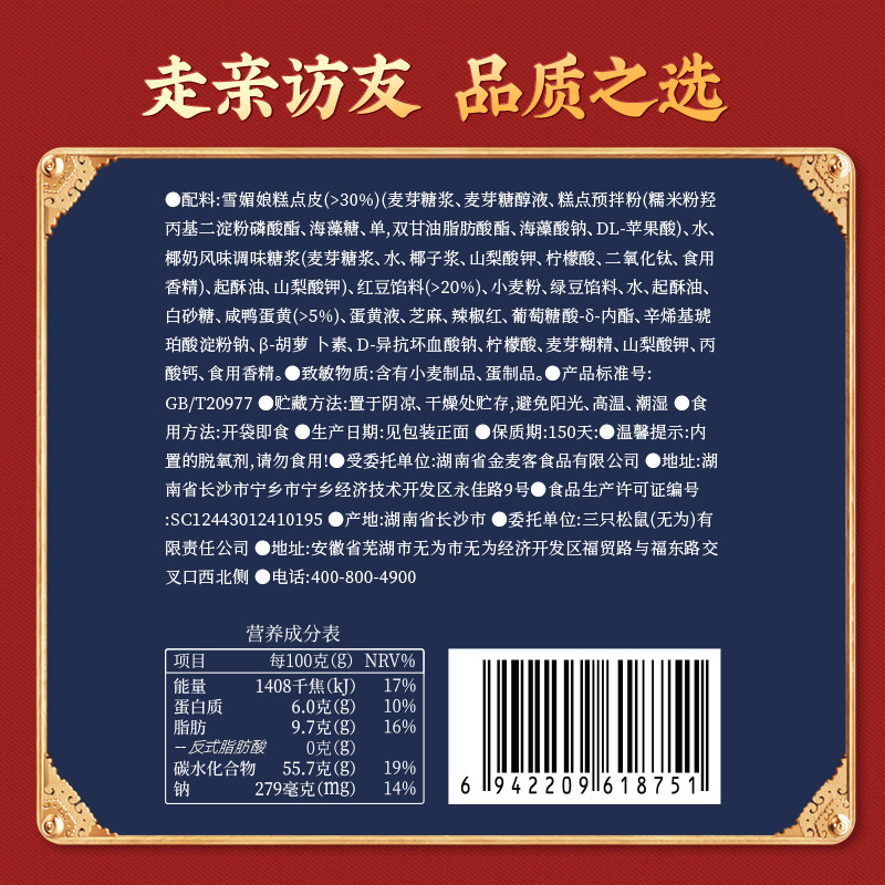 三只松鼠蛋黄酥送礼盒红豆味雪媚娘麻薯中式糕点心早餐零食礼盒