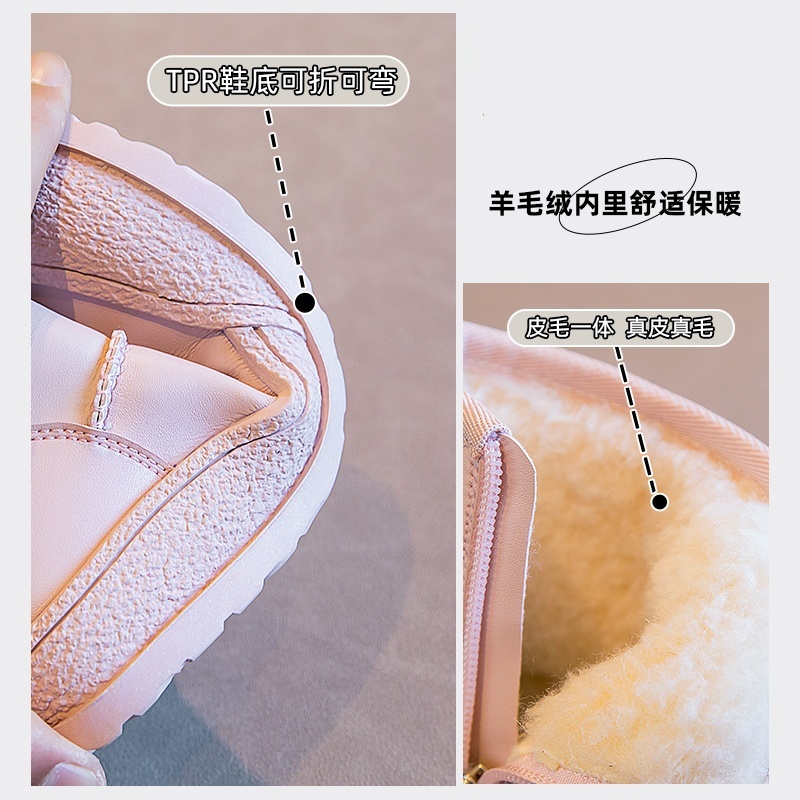 儿童棉鞋雪地靴女童2025年冬季新款皮毛一体靴子加绒加厚男童短靴