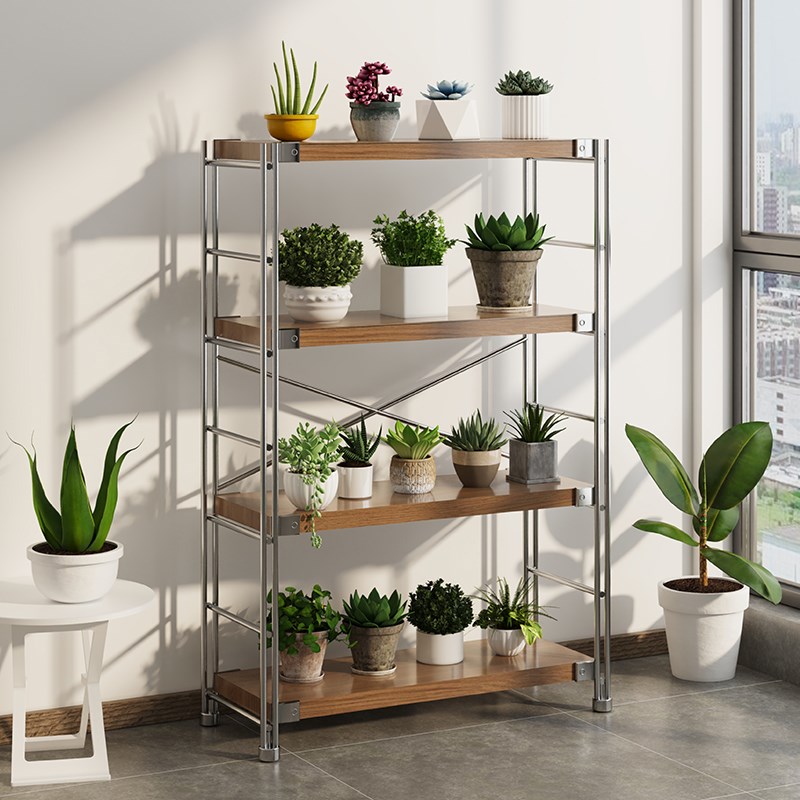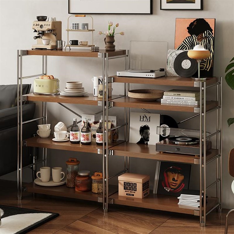 日式置物架落地多层中古储物架厨房收纳架客厅阳台花架简约书架