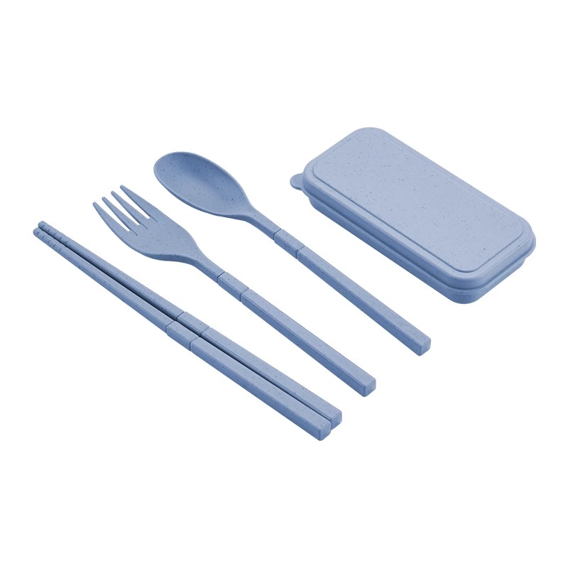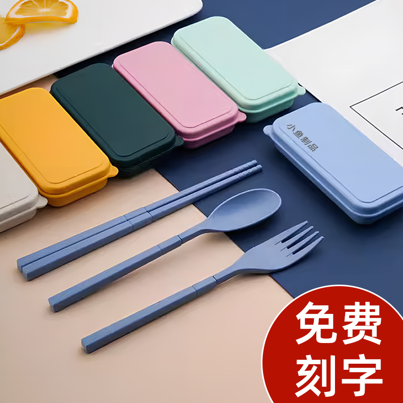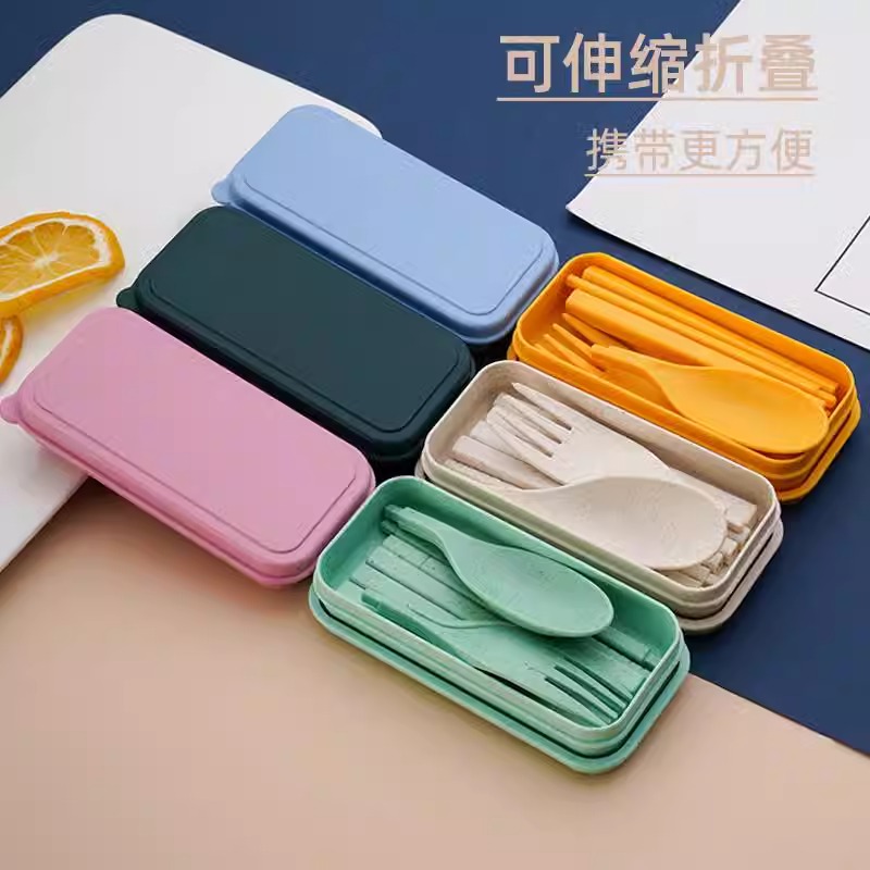 小麦秸秆折叠餐具筷子叉子勺子套装便携可拆分收纳外出旅行筷叉勺