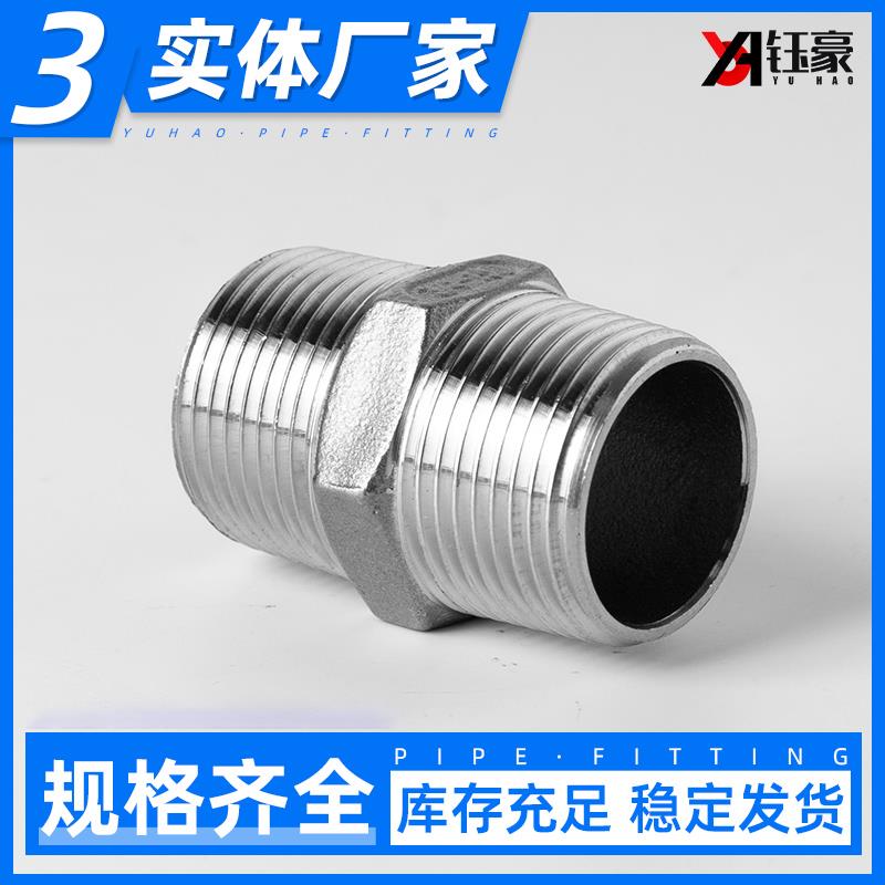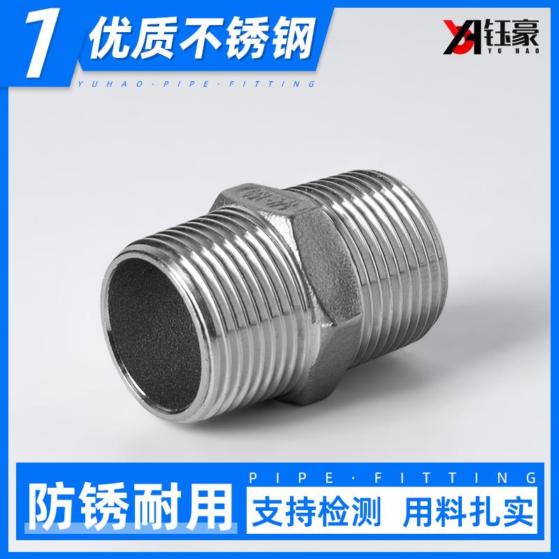 304/316L不锈钢双公螺丝双头外丝直通接头外牙螺纹水管直接4分6分