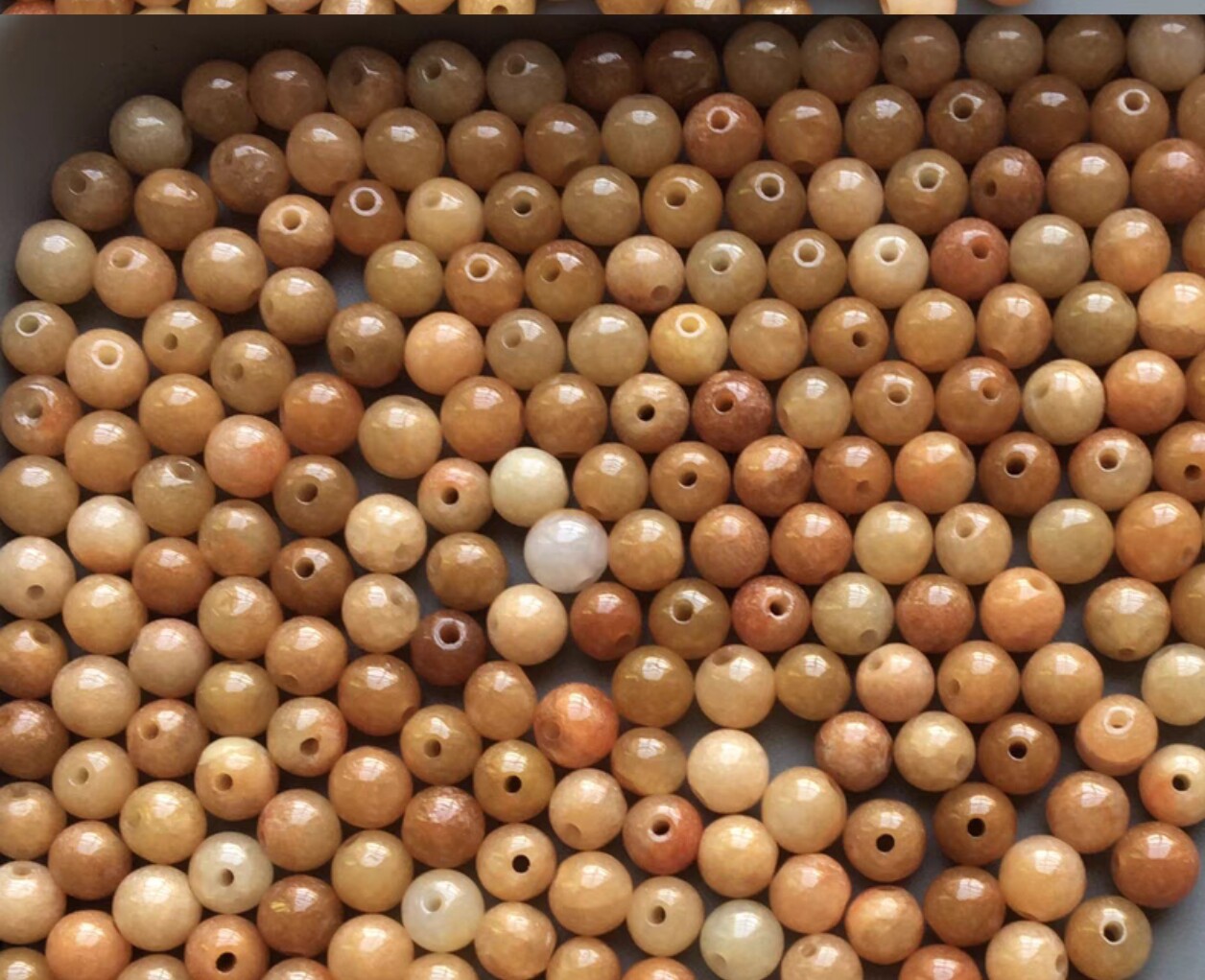 A货烧红黄翡7—10MM散珠圆珠子项链散珠玉珠黄翡烤红珠手链