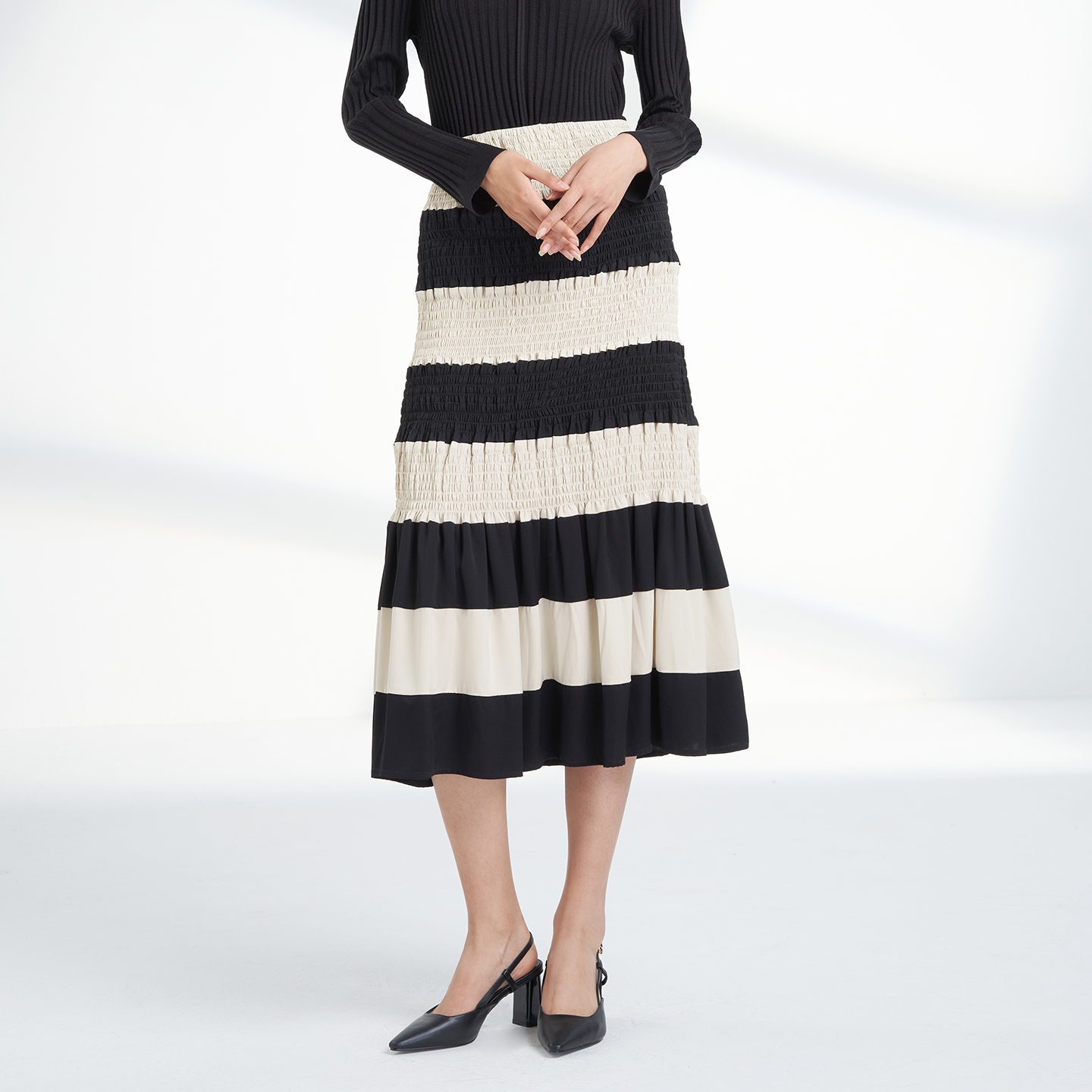 鹿王半身裙女士桑蚕丝复古条纹宽松洋气百搭修身显瘦时尚夏季新款