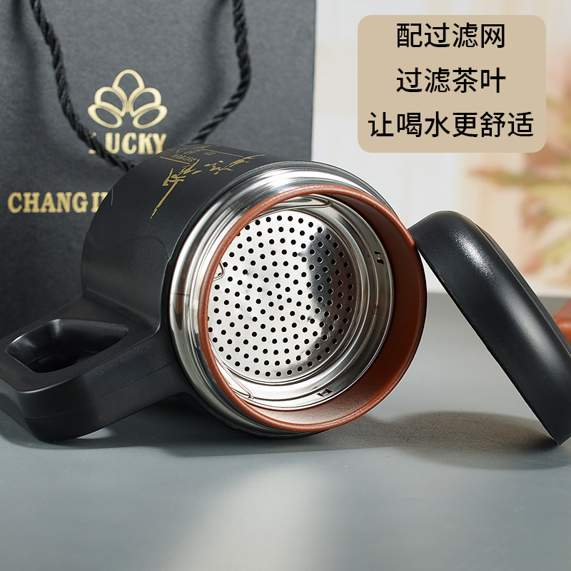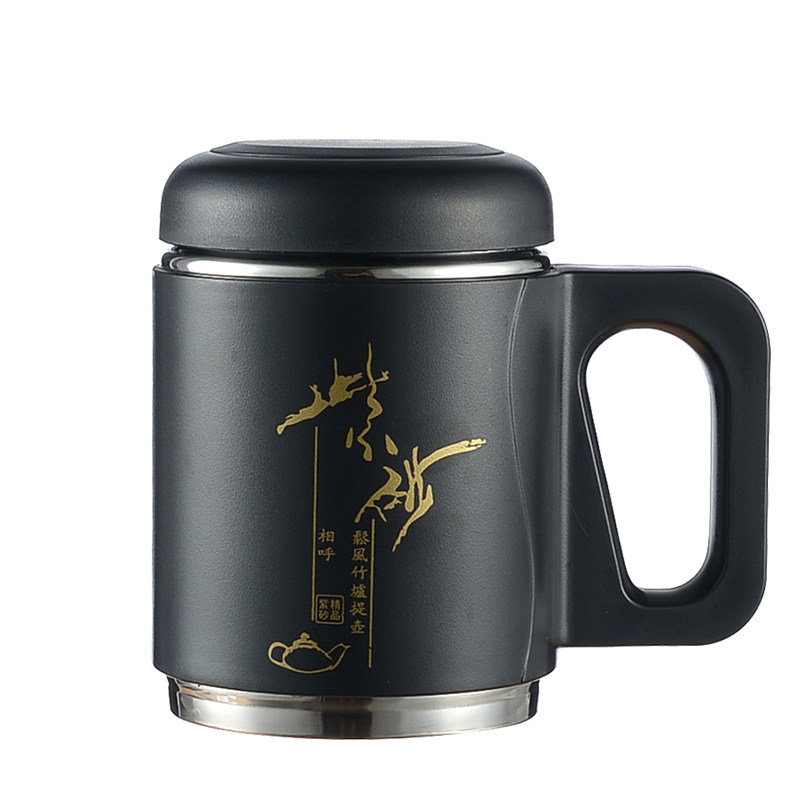 大容量宜兴紫砂内胆保温杯男士办公泡茶杯子带手柄商务水杯礼品杯