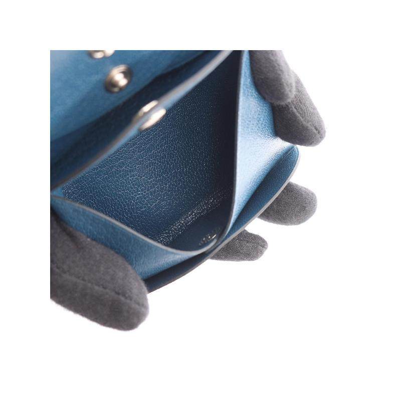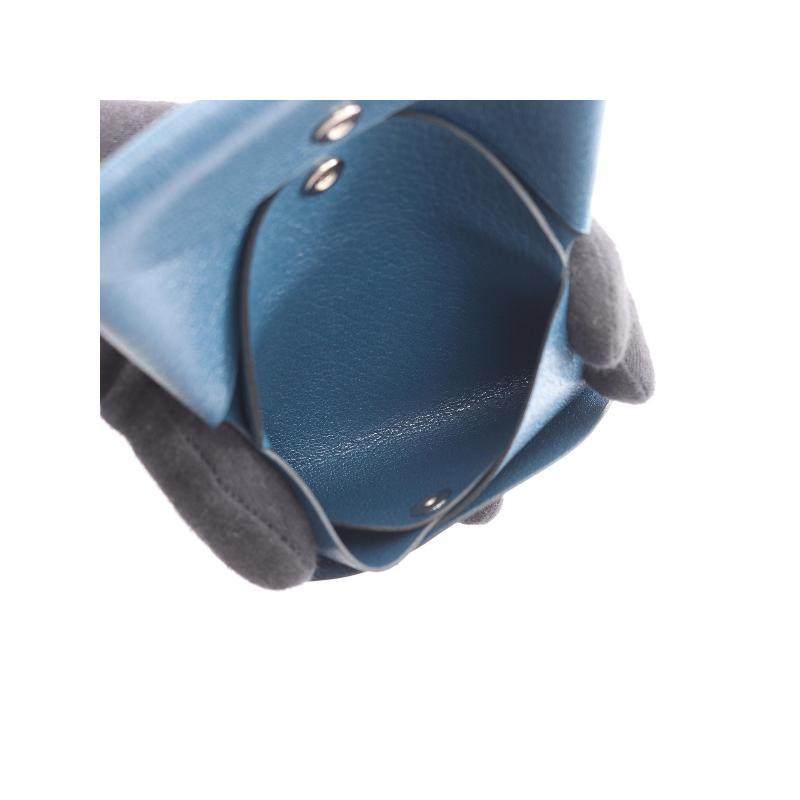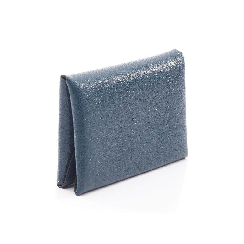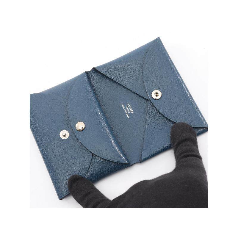 中古Hermes爱马仕女A级95新Calvi牛皮零钱包蓝色