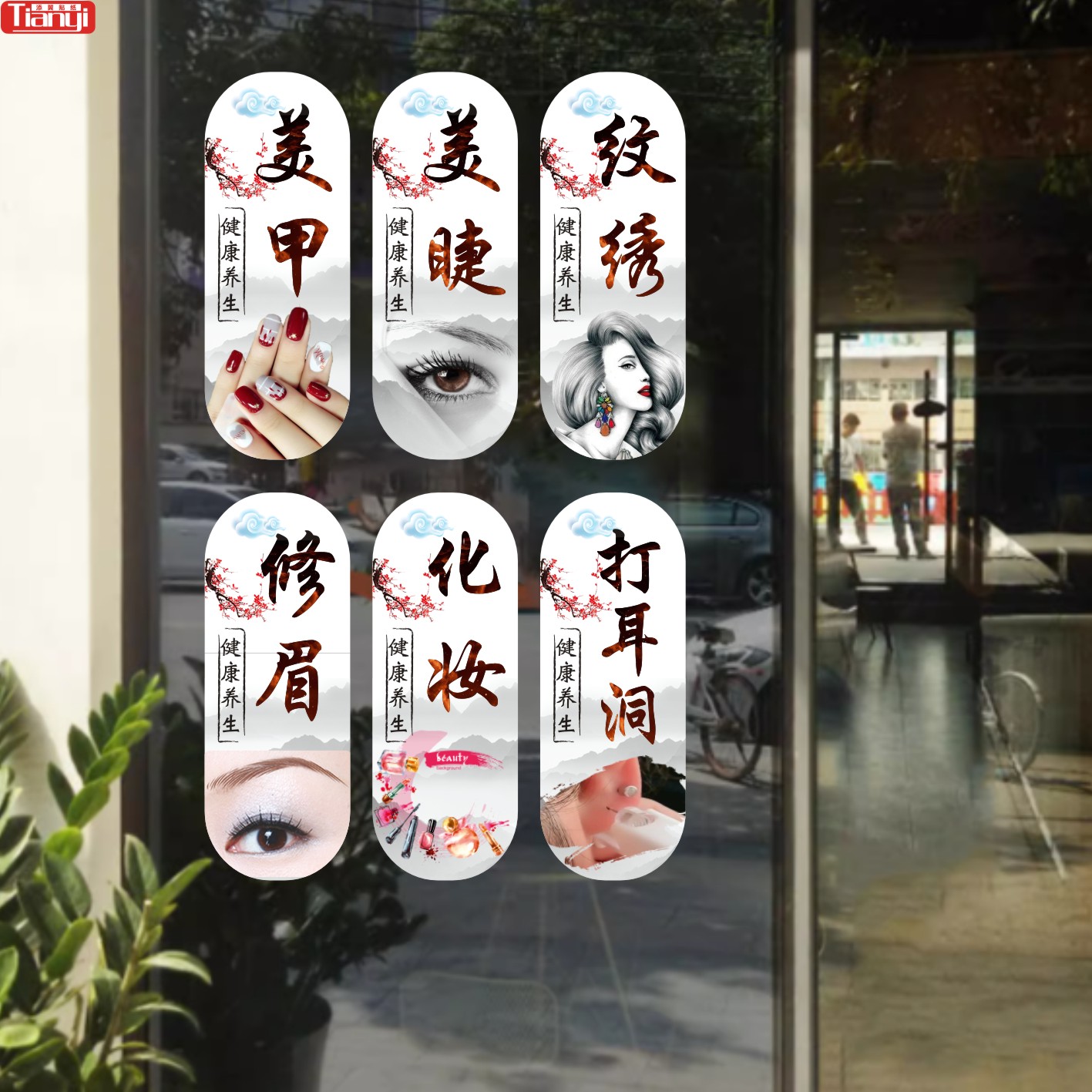 创意美甲美睫店美容院玻璃门橱窗项目纹绣彩色贴纸会所广告墙贴画