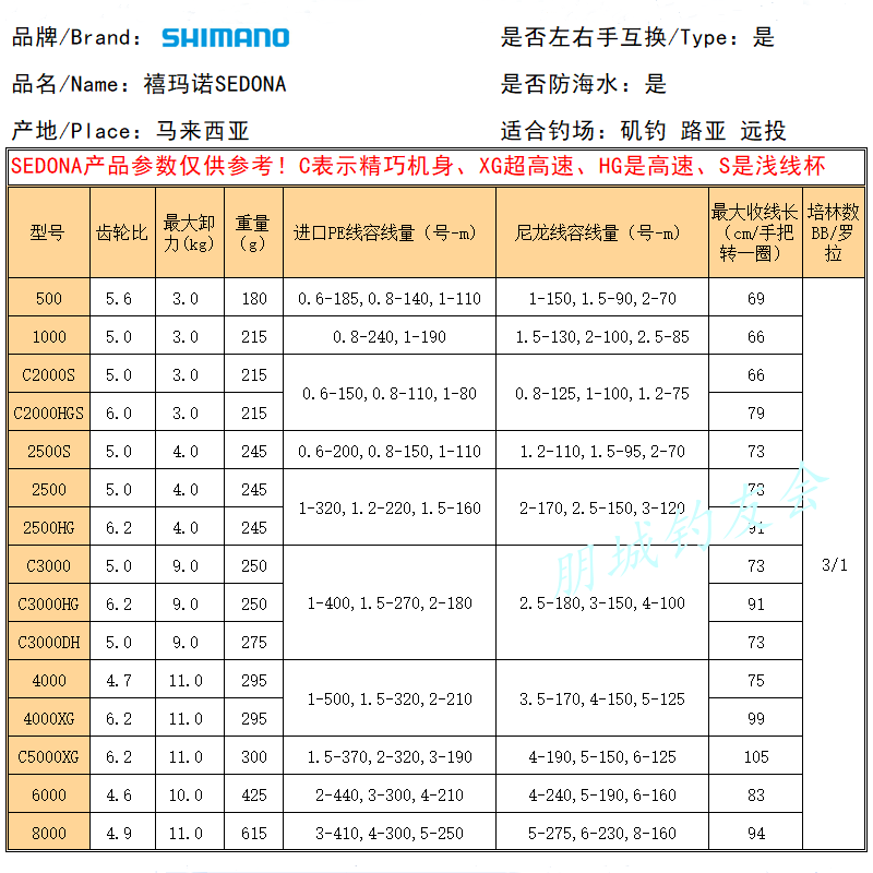 禧玛诺纺车轮SEDONA赛多纳路亚轮远投海钓鱼轮轻量金属线杯深线杯
