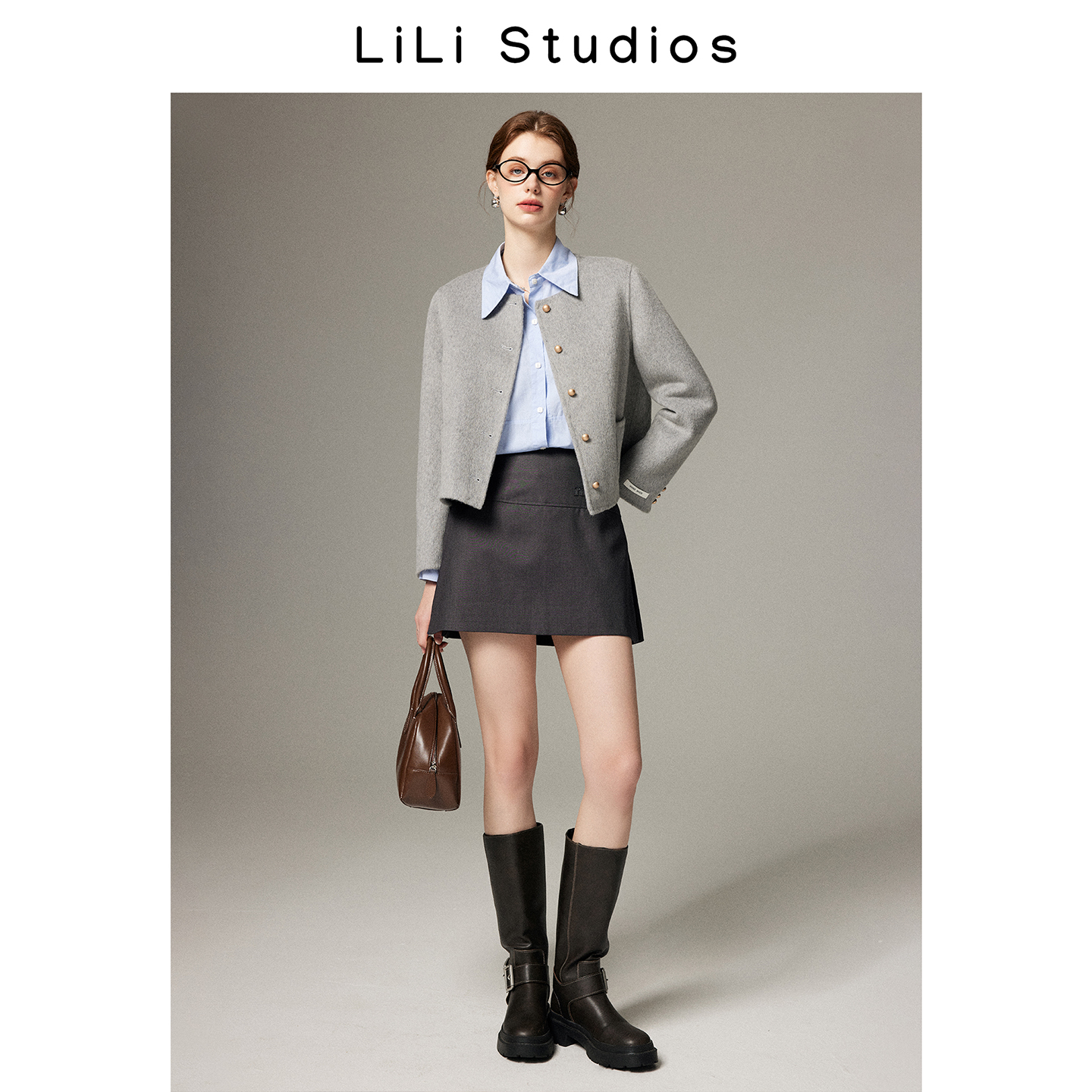 高级感灰色双面呢外套女短款小个子2025秋季新款赫本风羊毛呢大衣