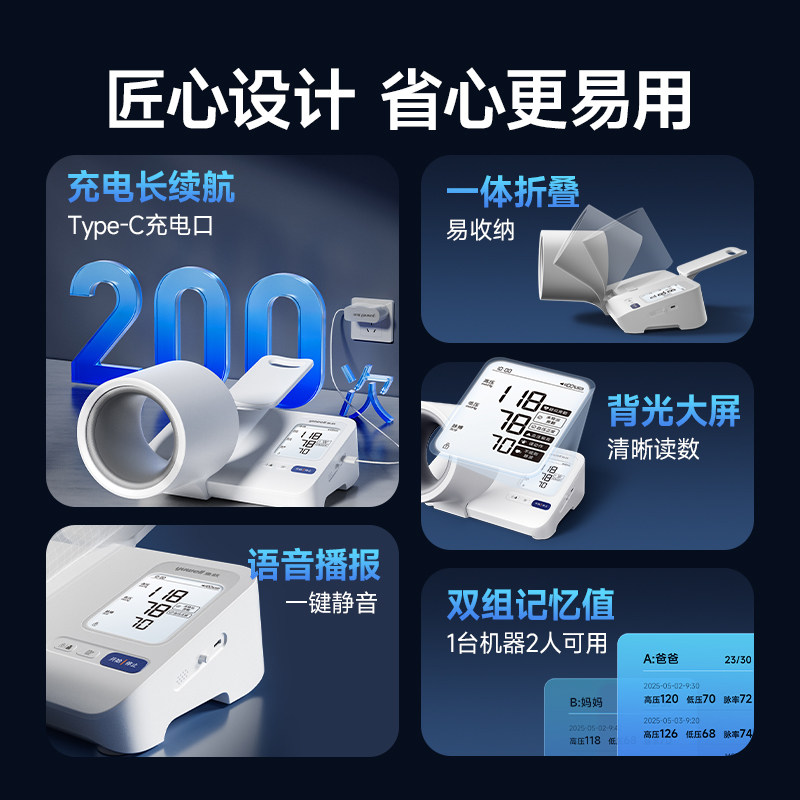 【新品】鱼跃臂筒式血压计房颤血压测量仪高精准家用正品测压仪